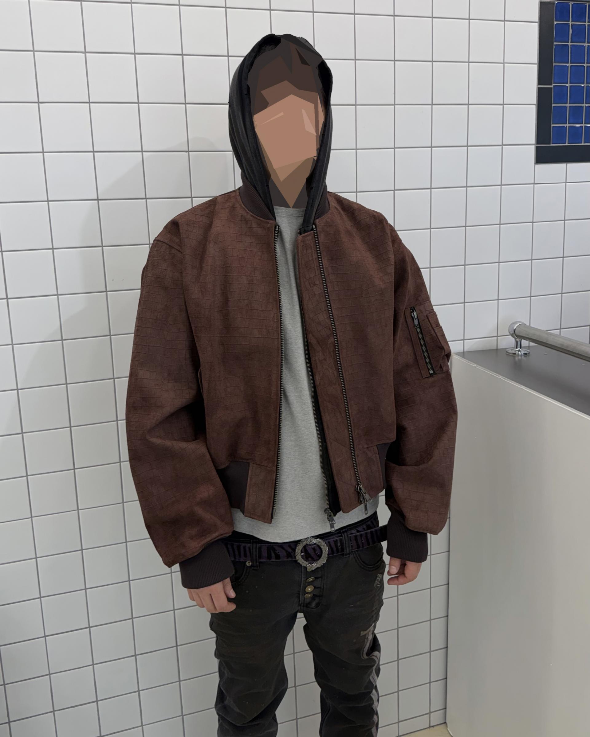 25SS RED ALLIGATOR EFFECT MATT SUEDE MA-1 - MATT RED