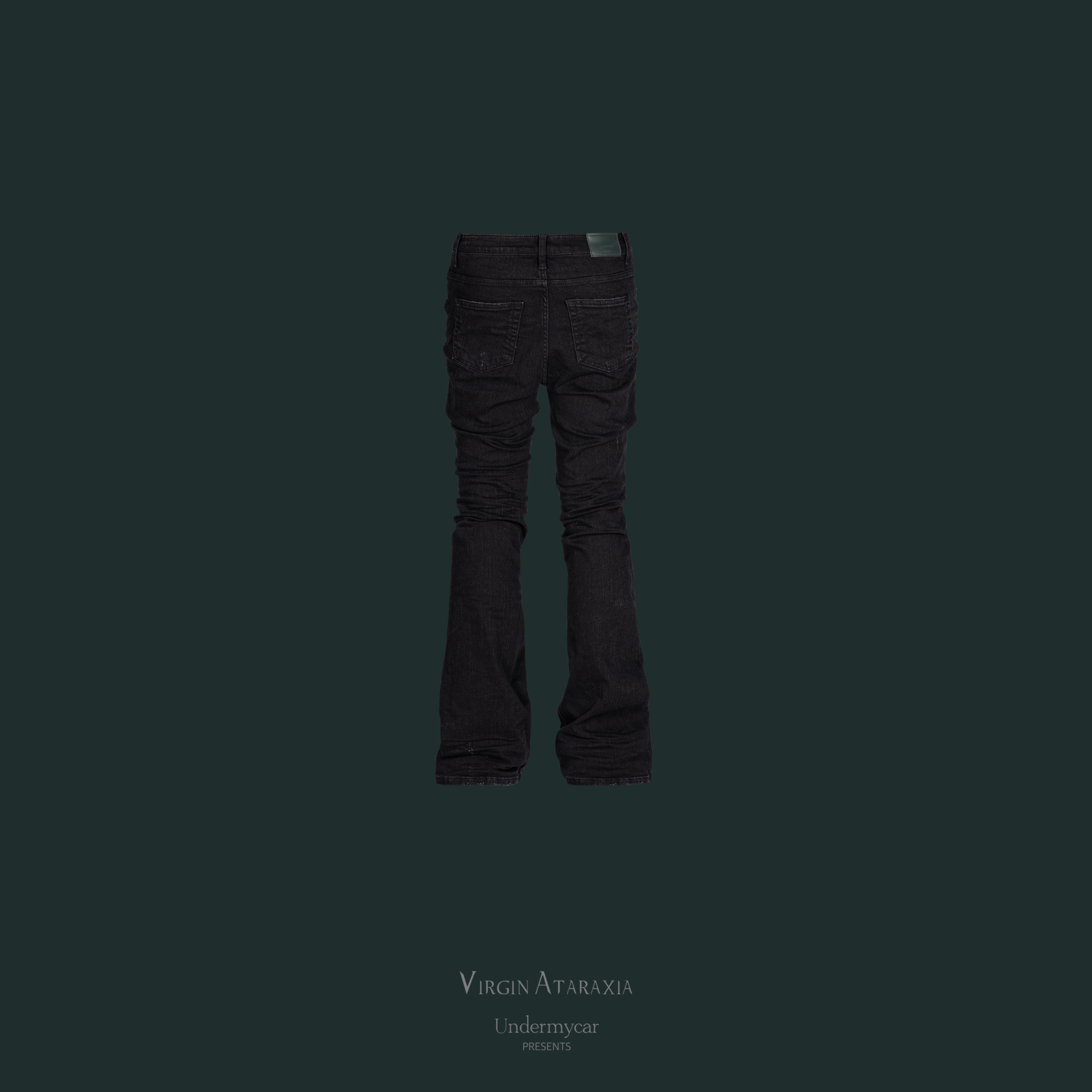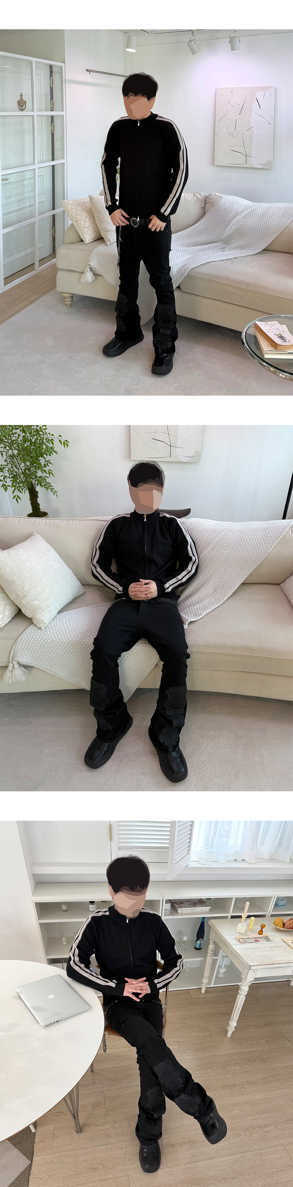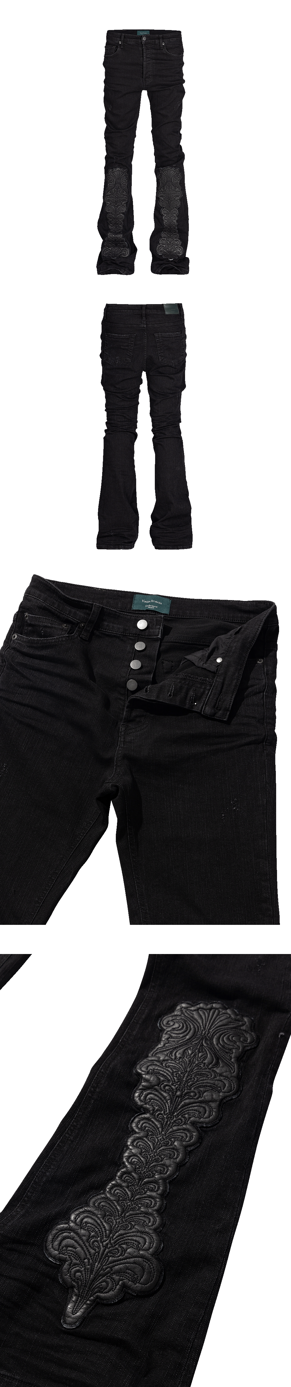 가죽으로 표현한 노블 패치가 수놓아진 플레어 팬츠