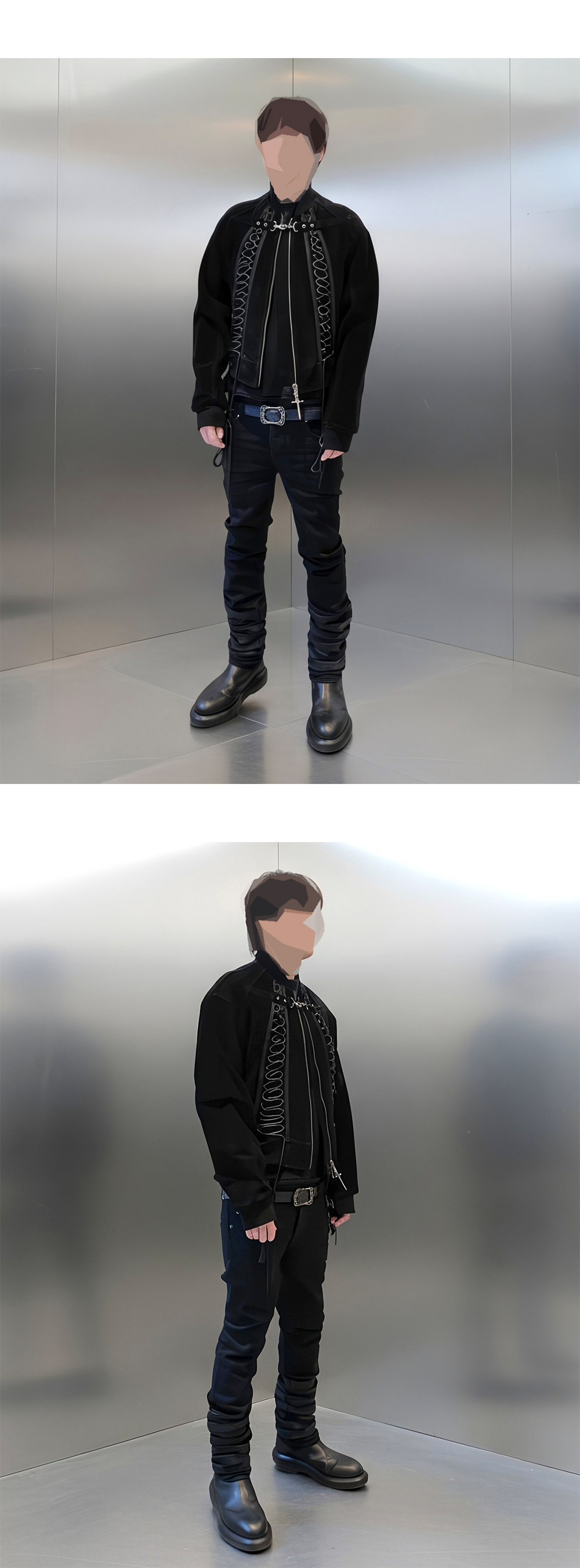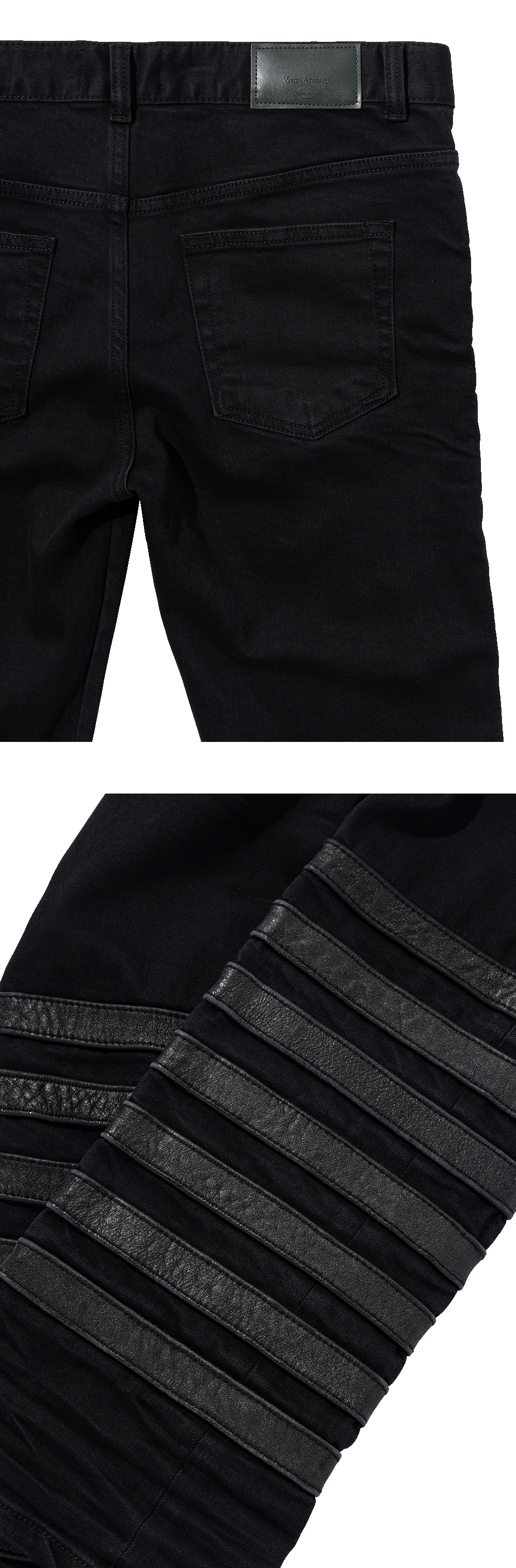 7개의 가죽 링으로 마감된 데님이며,