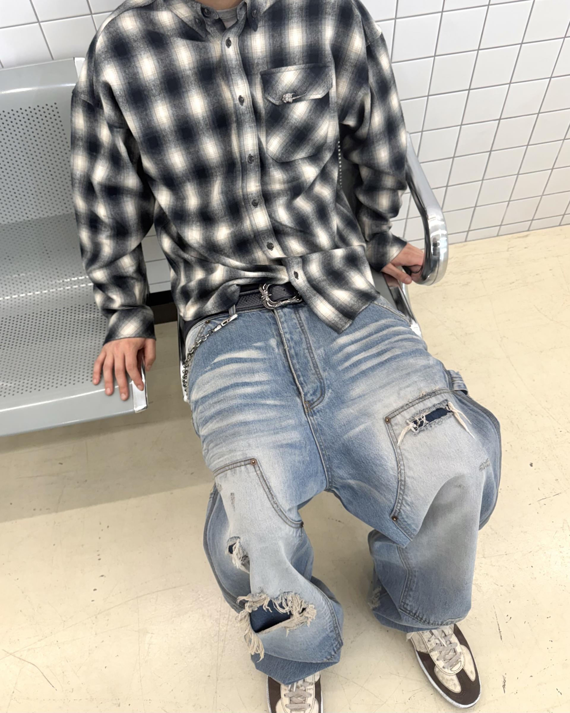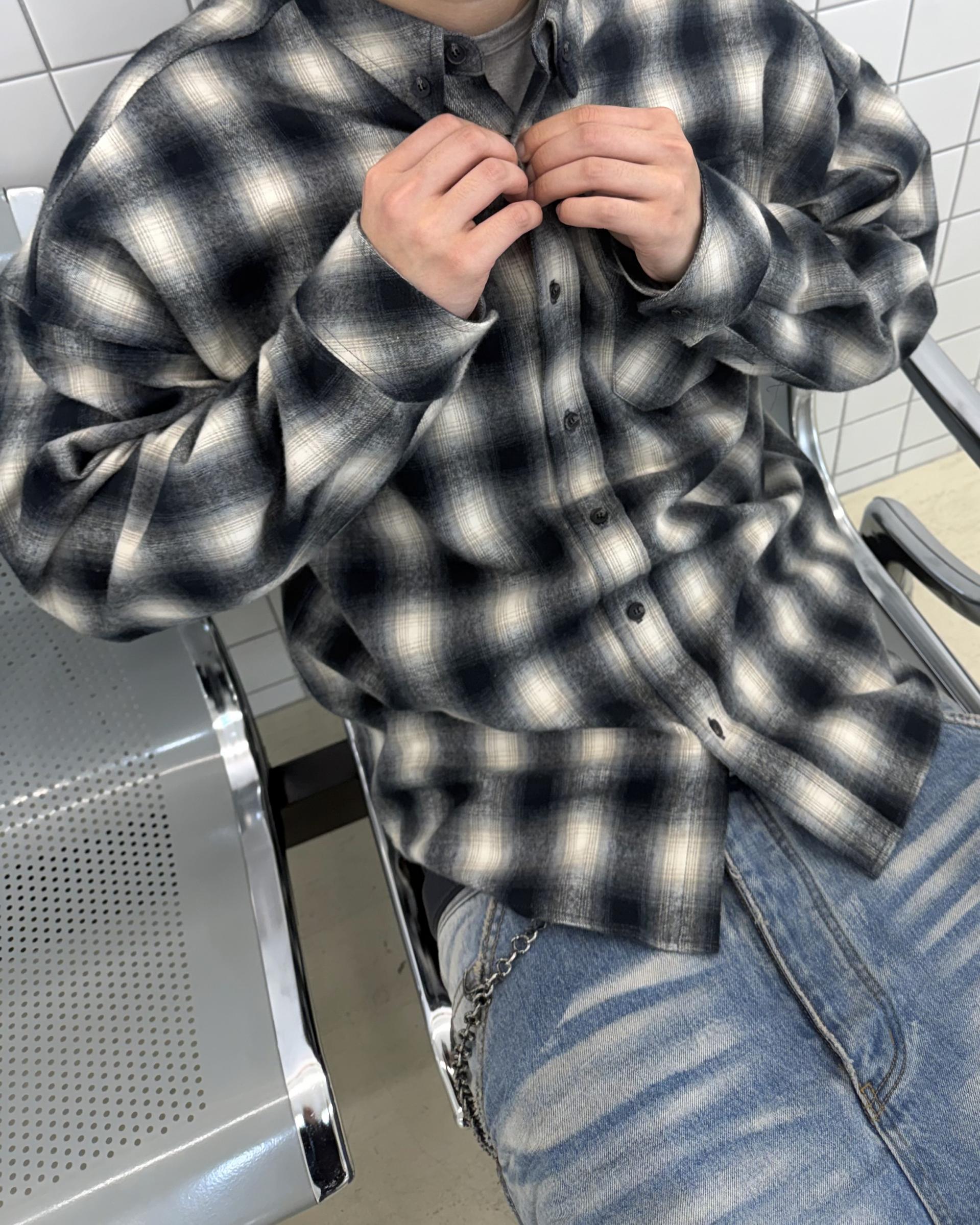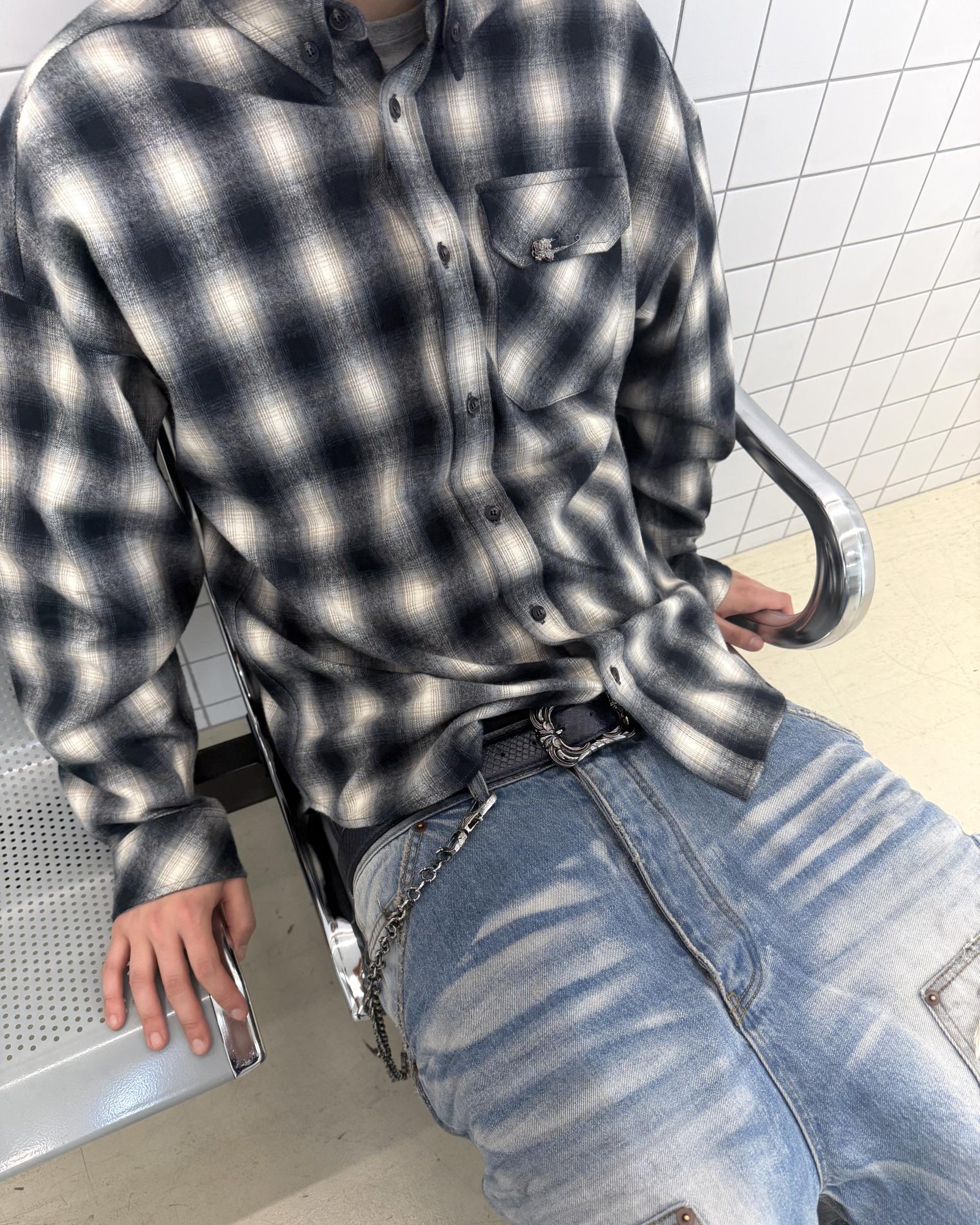 25FW BLACK ROSE PIN OMBRE CHECK SHIRTS - BEIGE BLACK