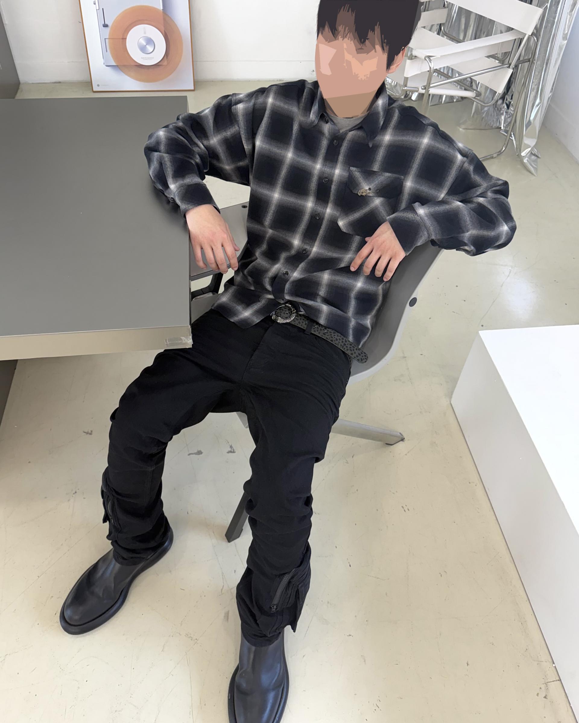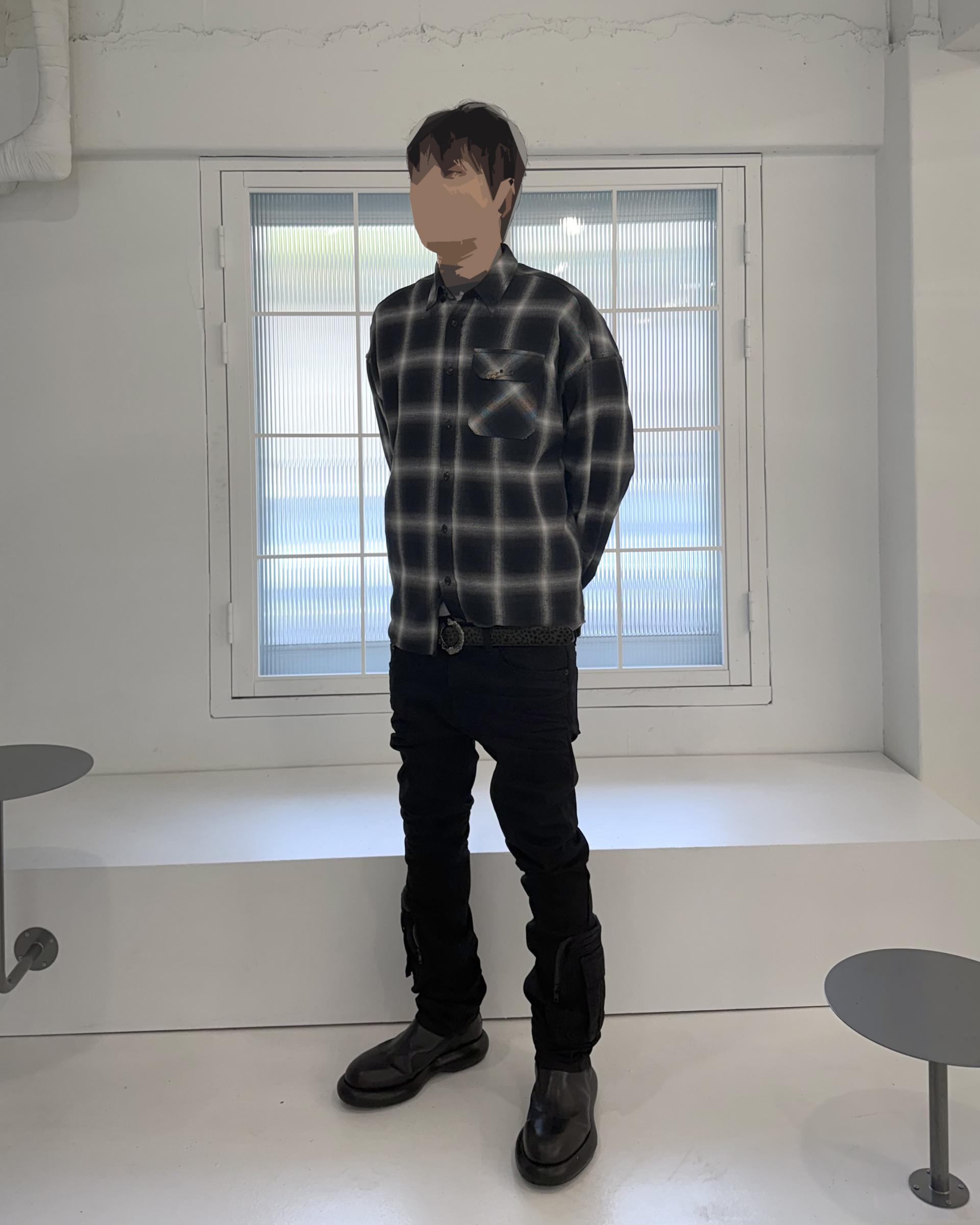 25FW ANTIQUE ROSE PIN OMBRE BORDER CHECK SHIRTS - BLACK