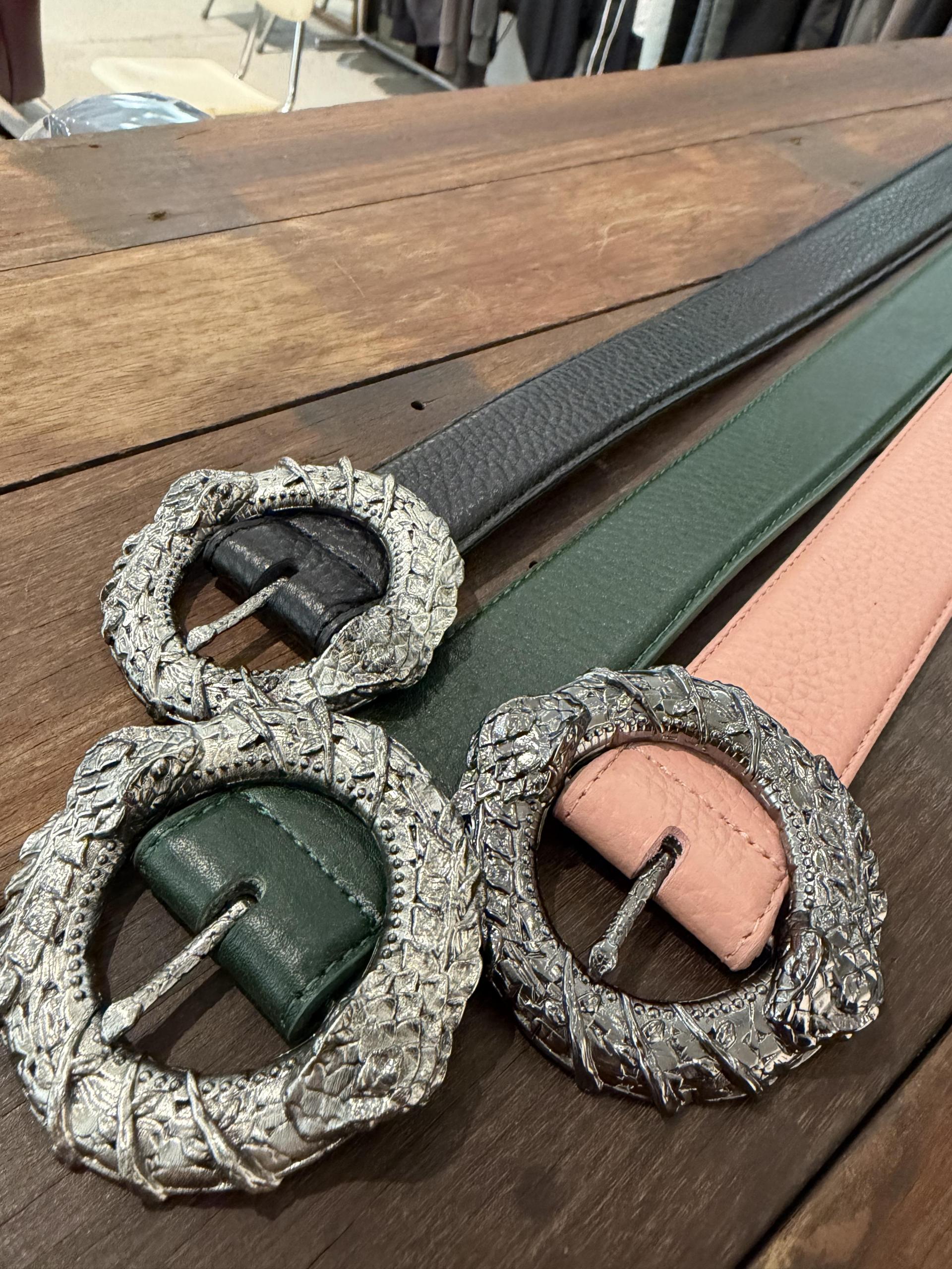 25FW OUROBOROS LOOP BUCKLE LEATHER BELT - GREEN