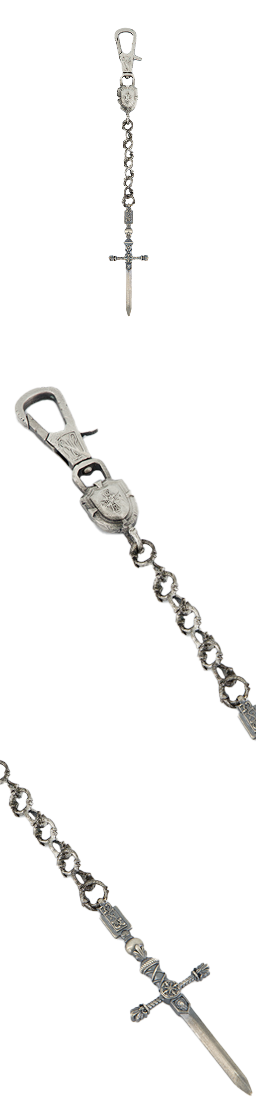 925실버로 제작된 잔다르크의 검과 방패를 그리핀의 발톱으로 연결한 키링입니다. 한국에서 소량으로 제작되었습니다.