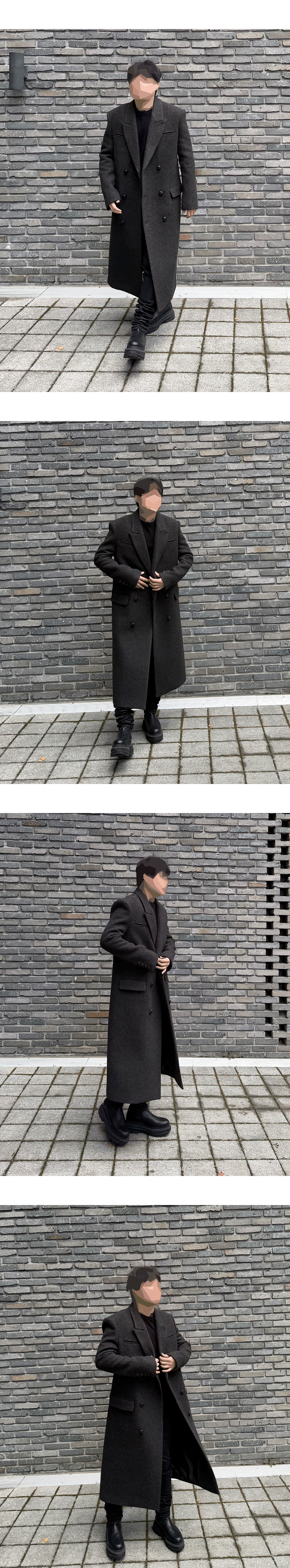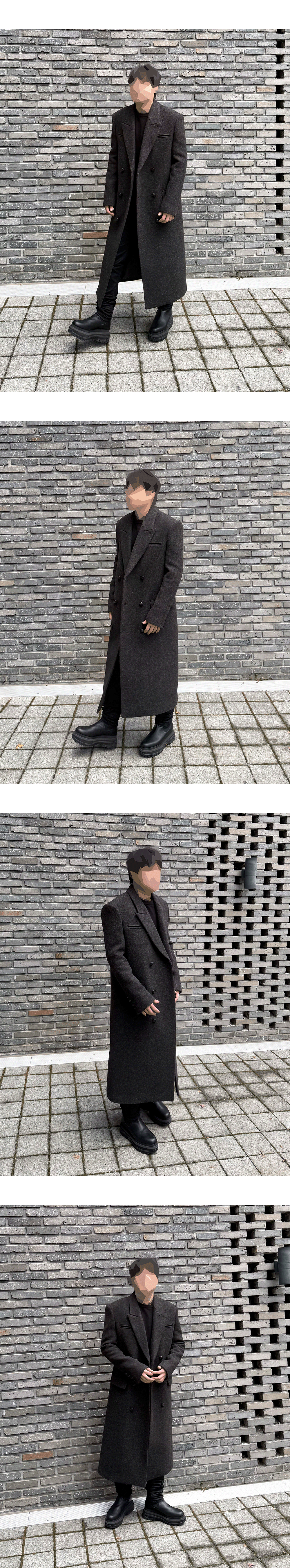각진 실루엣의 정갈한 슬림 핏 더플 코트