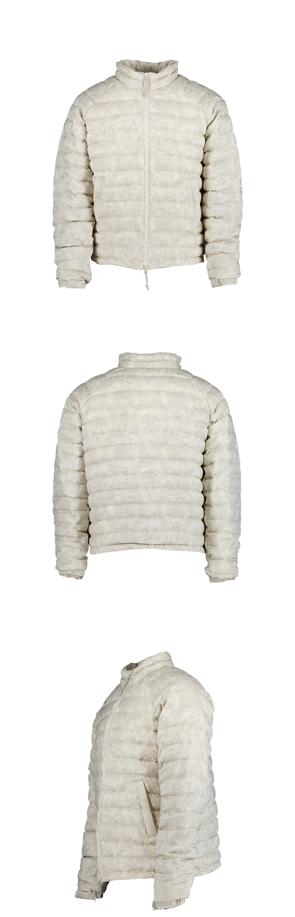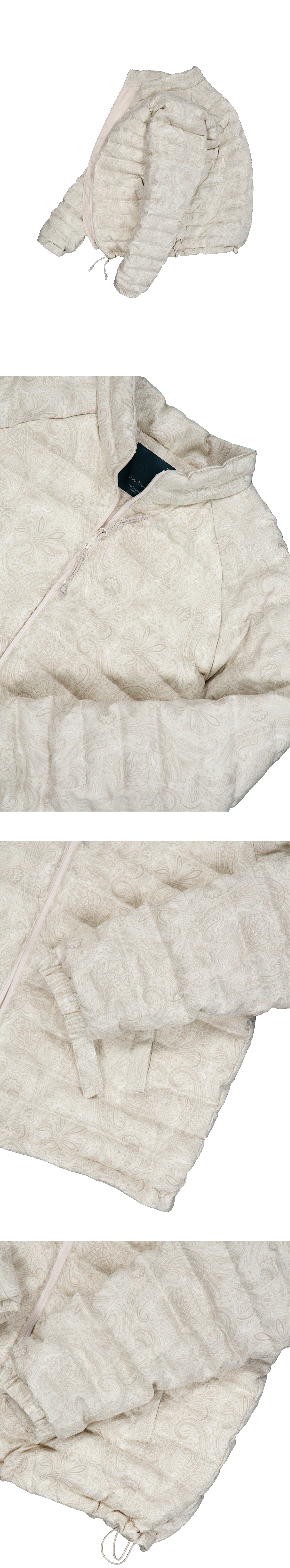 재패니즈 페이즐리 패브릭을 사용하여 제작된 슬림 구스패딩입니다.