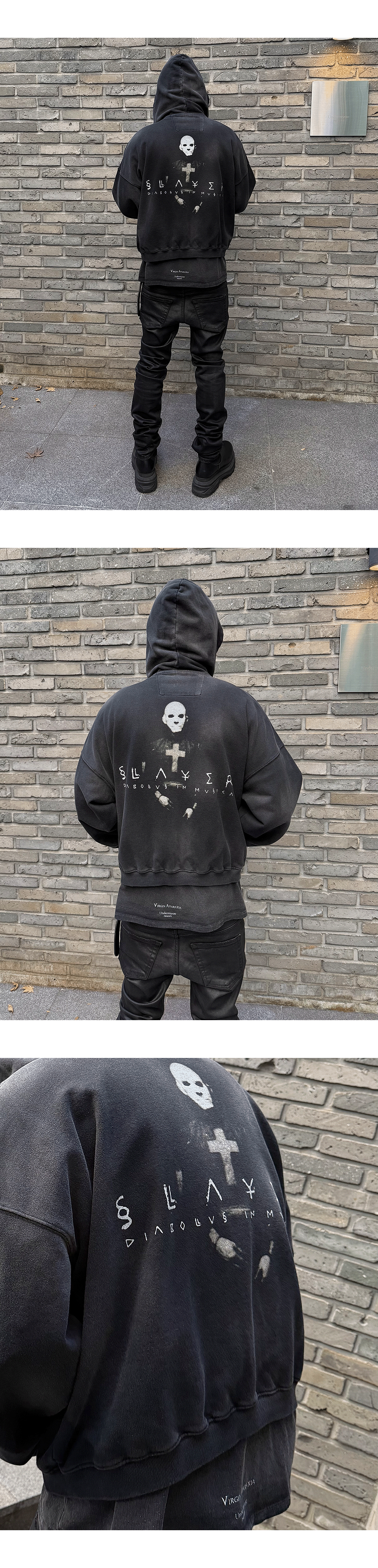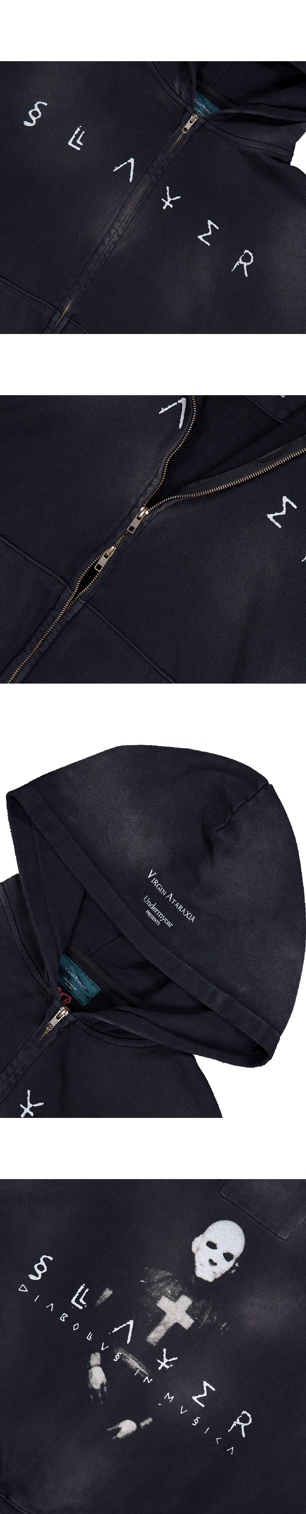 DIABOLUS IN MUSICA VINTAGE WASHED ZIPPED HOODIE - BLACK