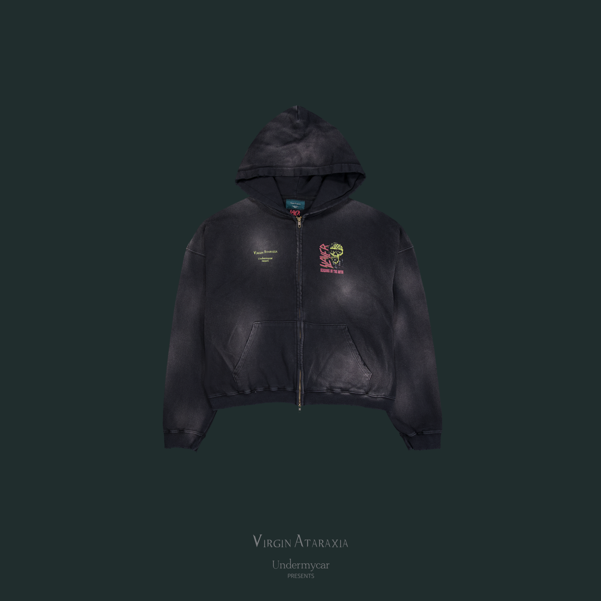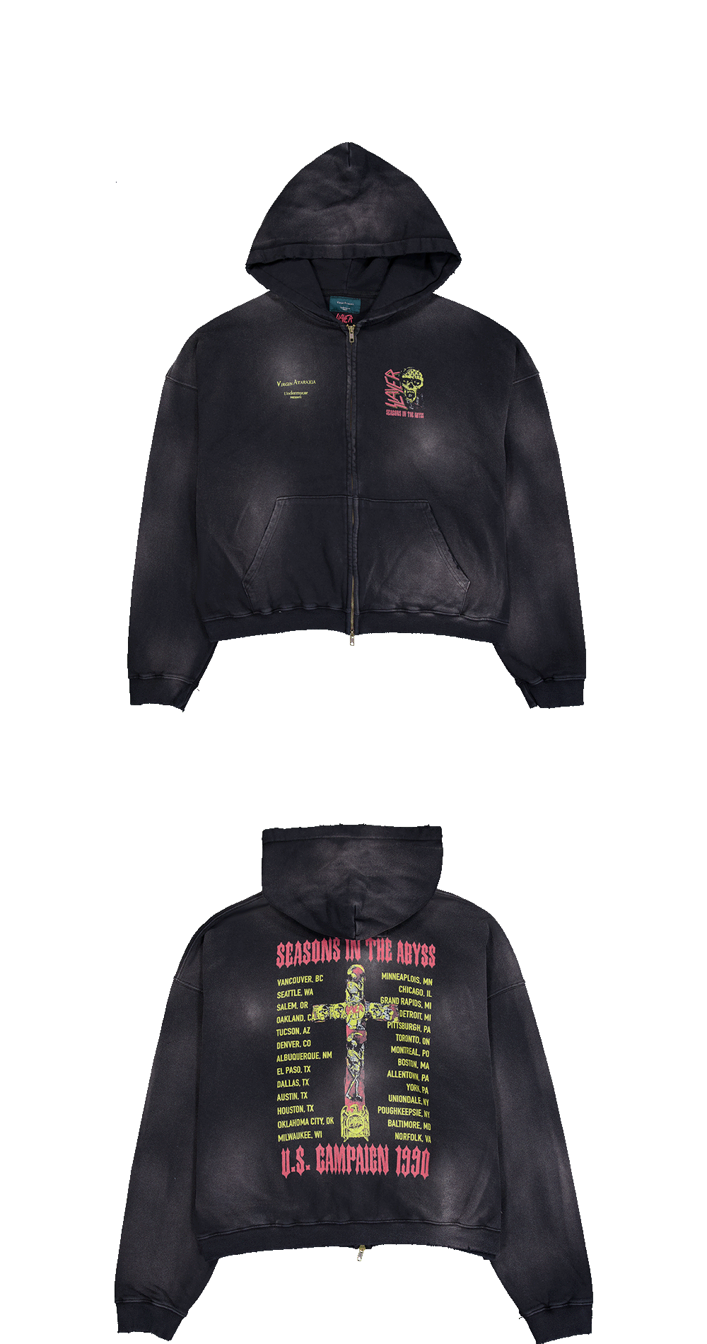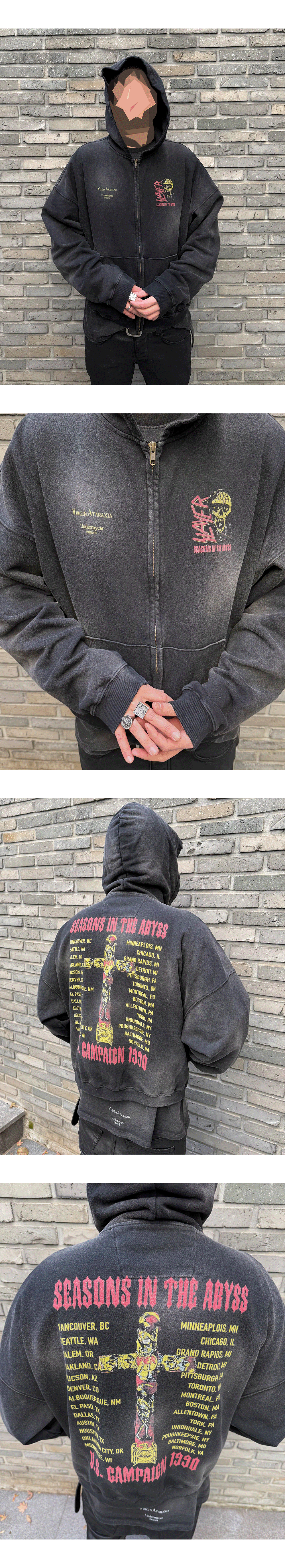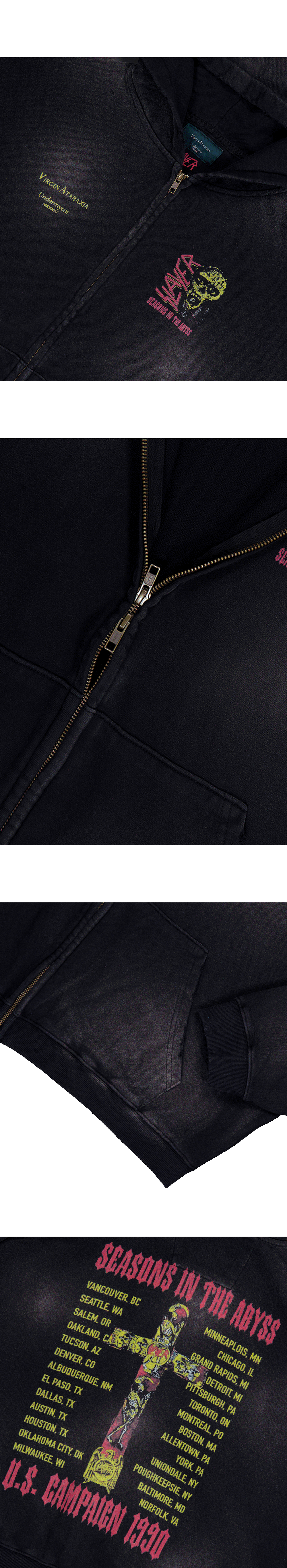 SEASONS IN THE ABYSS VINTAGE WASHED ZIPPED HOODIE - BLACK