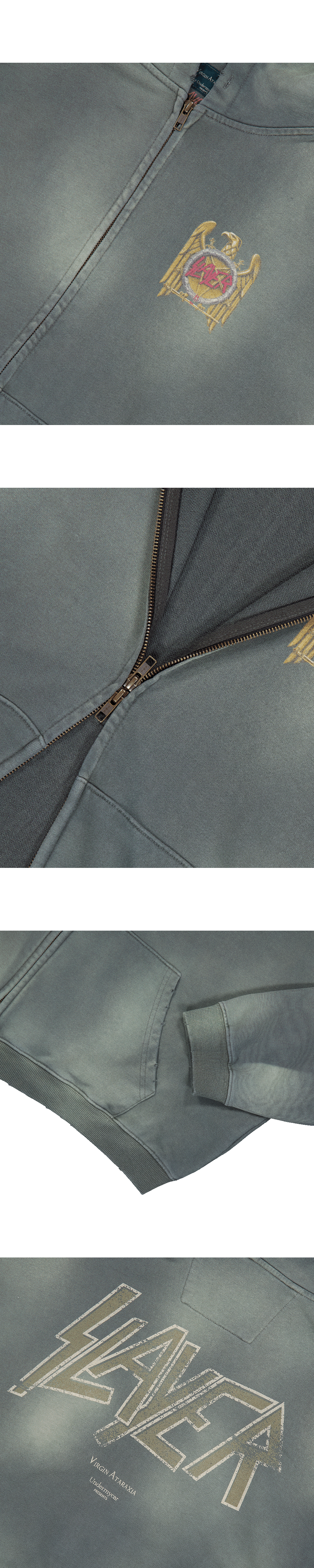 GOLD EAGLE VINTAGE WASHED ZIPPED HOODIE - KHAKI