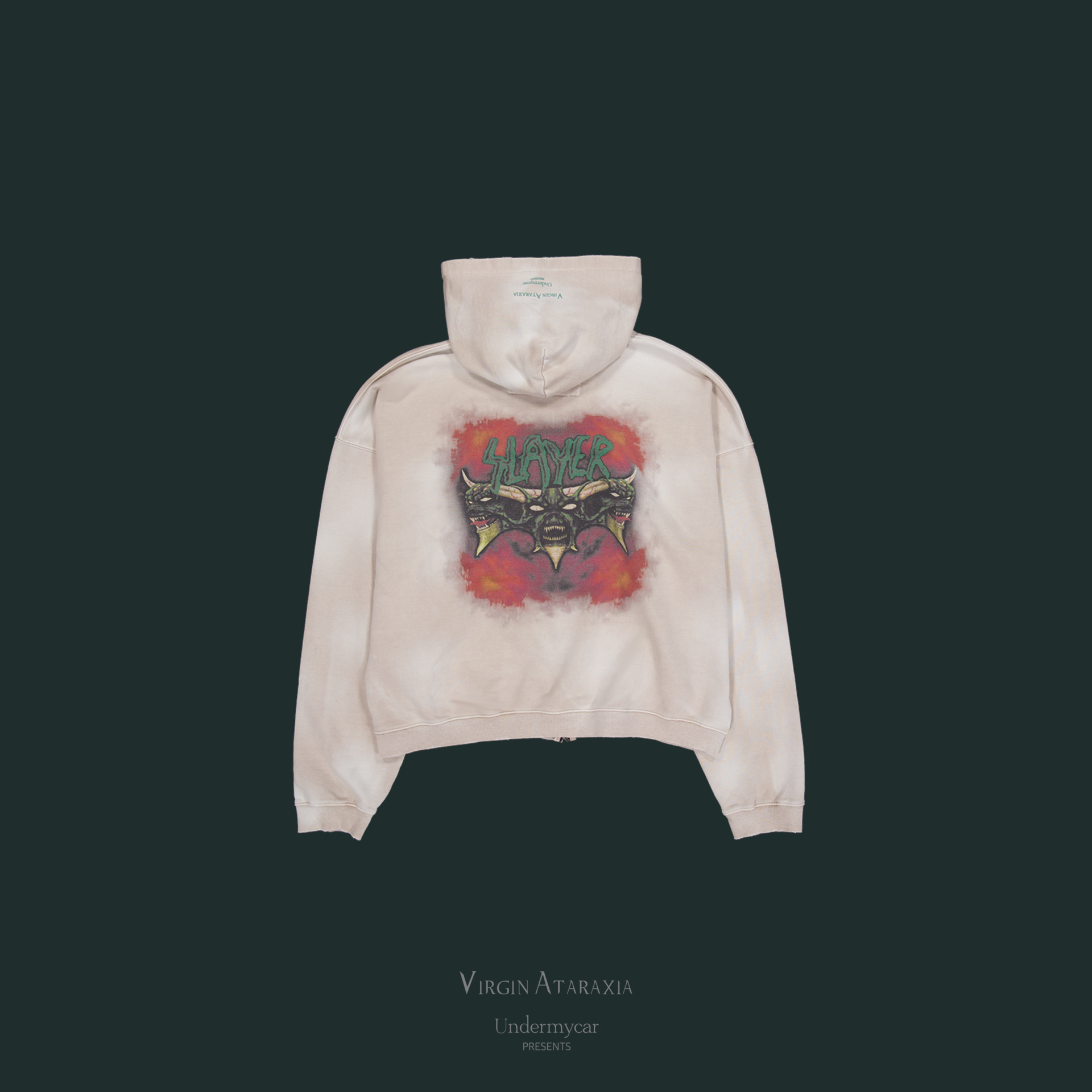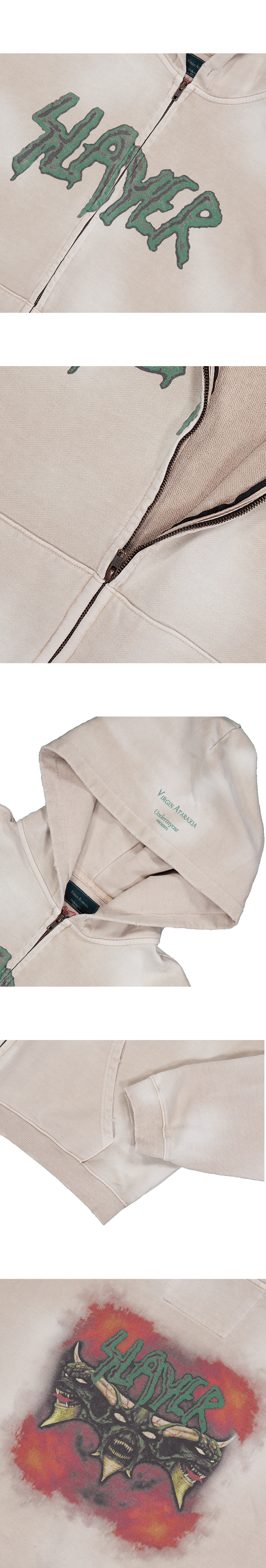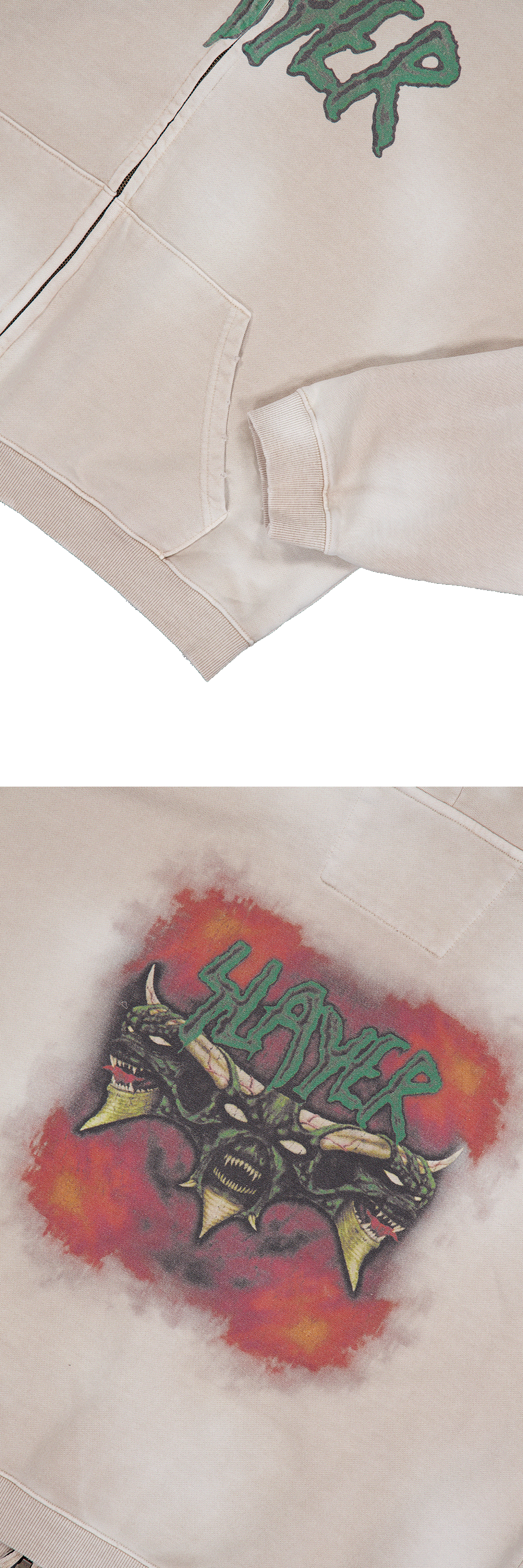 DEMON HEADS IN FLAMES VINTAGE WASHED ZIPPED HOODIE - TAN
