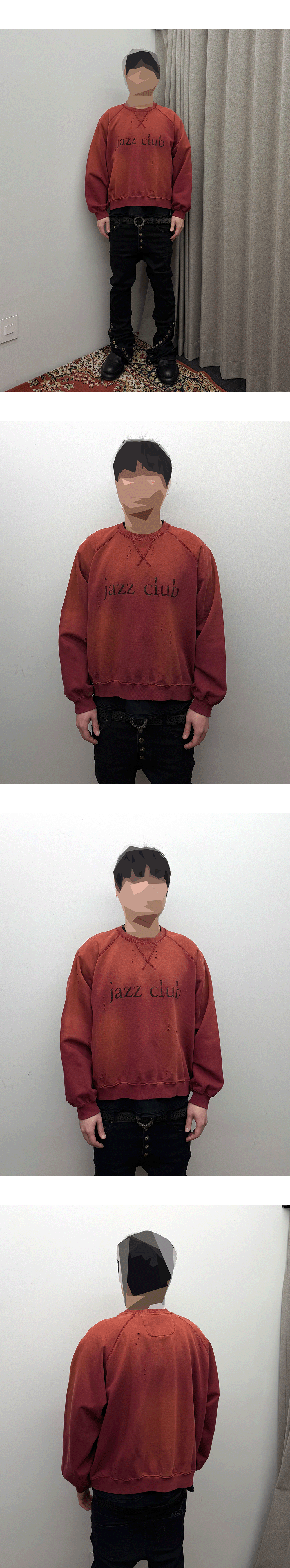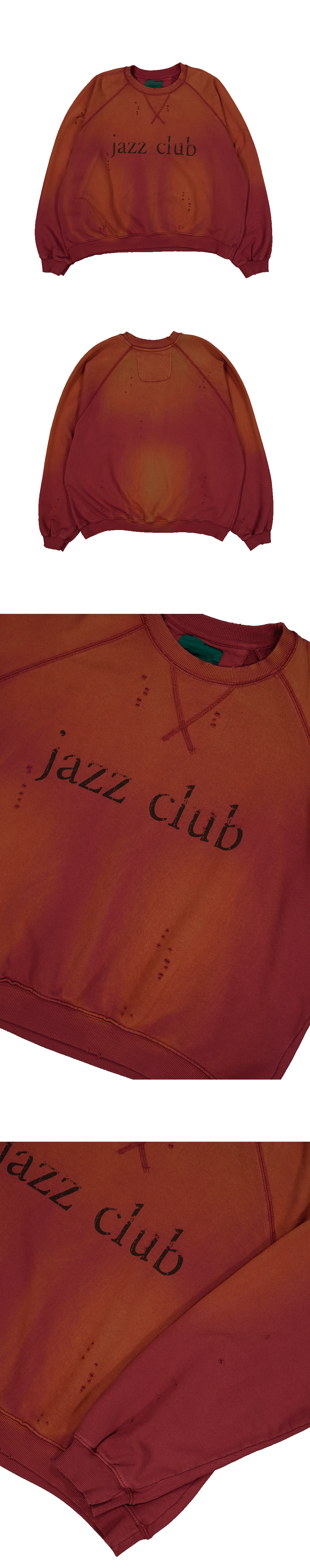 빈티지한 버건디 컬러 바디에 ‘째즈클럽’ 레터링을 더한 빈티지 무드의 맨투맨입니다.