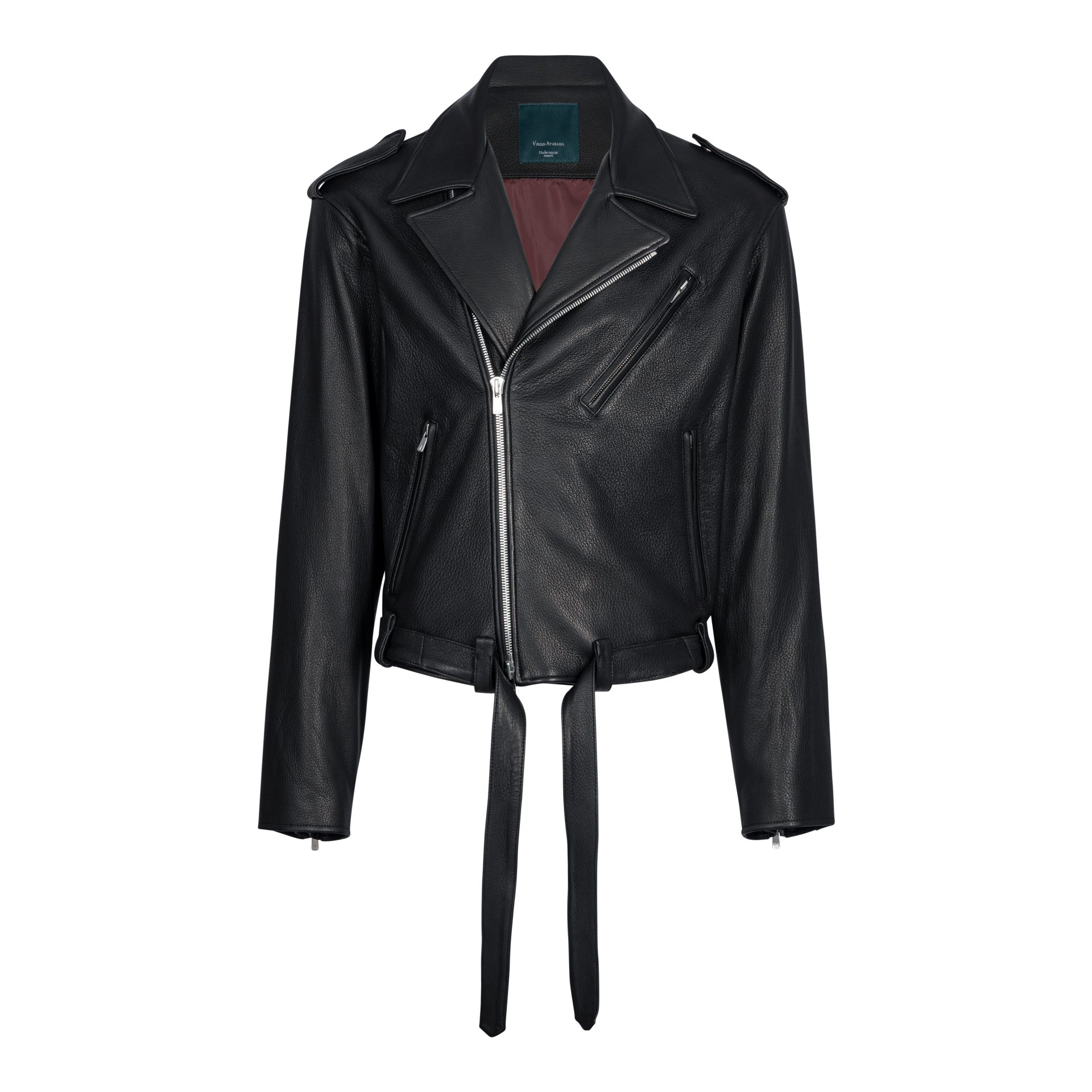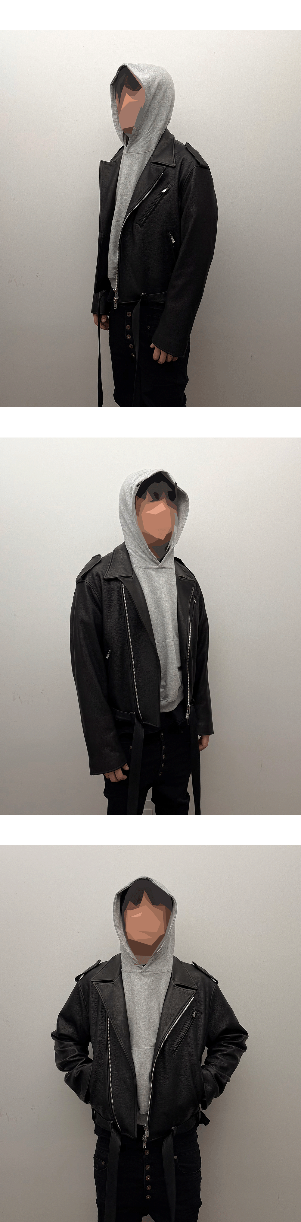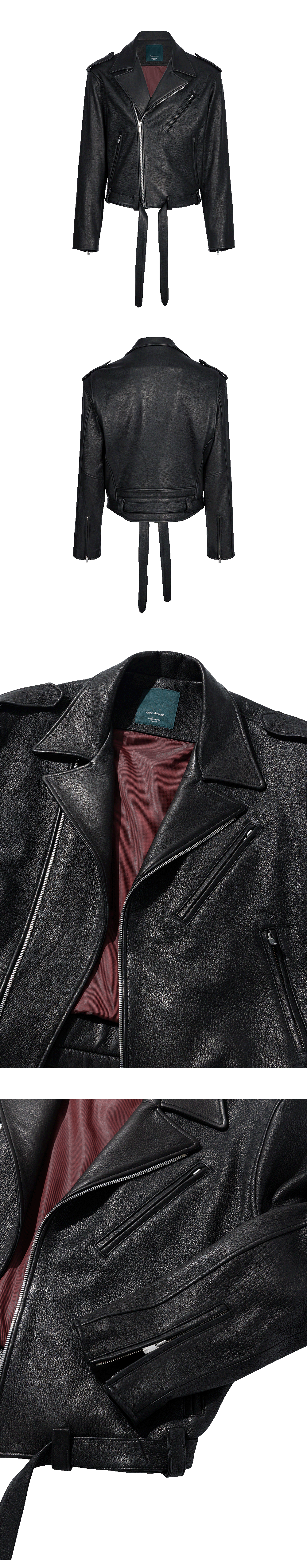 부드러운 염소가죽을 사용해 자연스러운 질감과 착용감을 살린 라이더 재킷입니다. 허리 라인에 적용된 롱 벨트 디테일이 실루엣에 포인트를 더해줍니다.