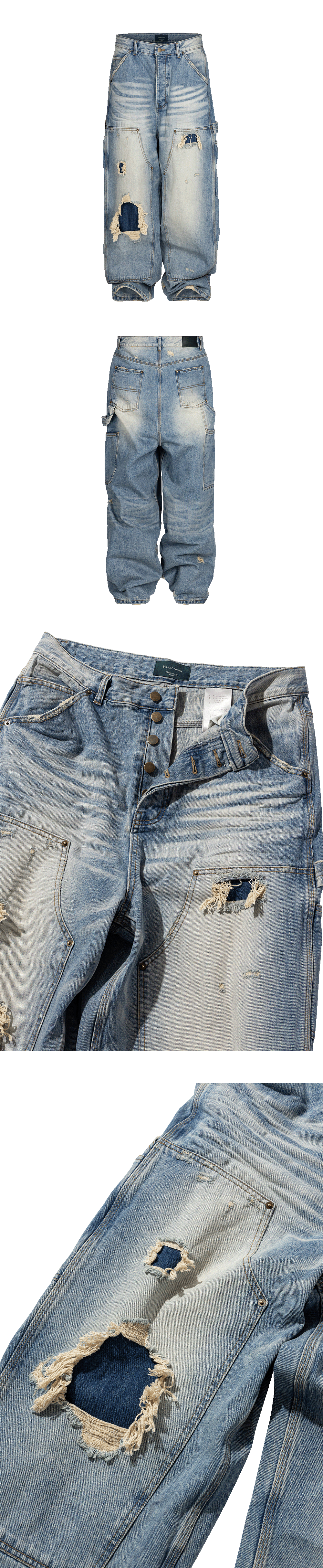 VINTAGE DISTRESSED DENIM CARPENTER - BLUE DENIM