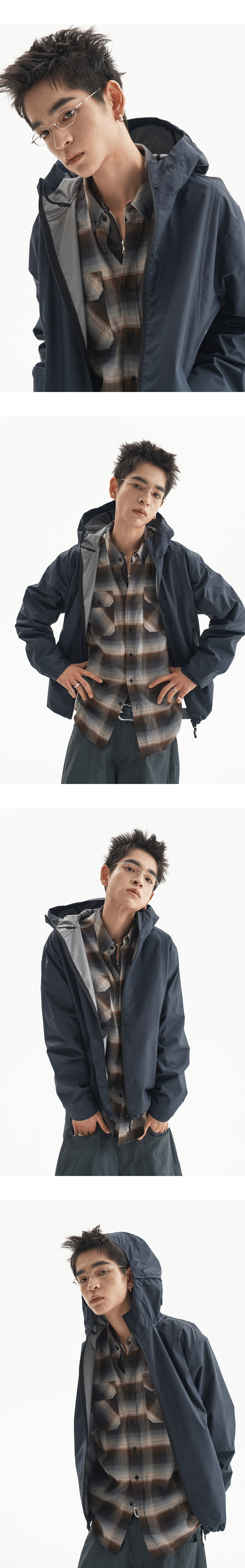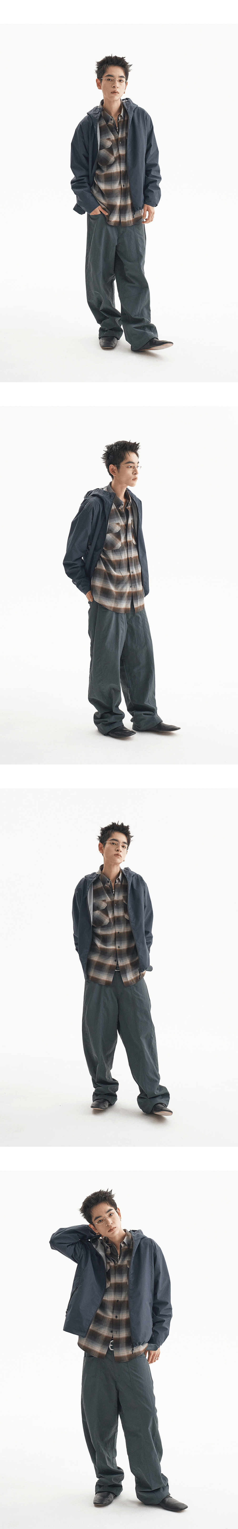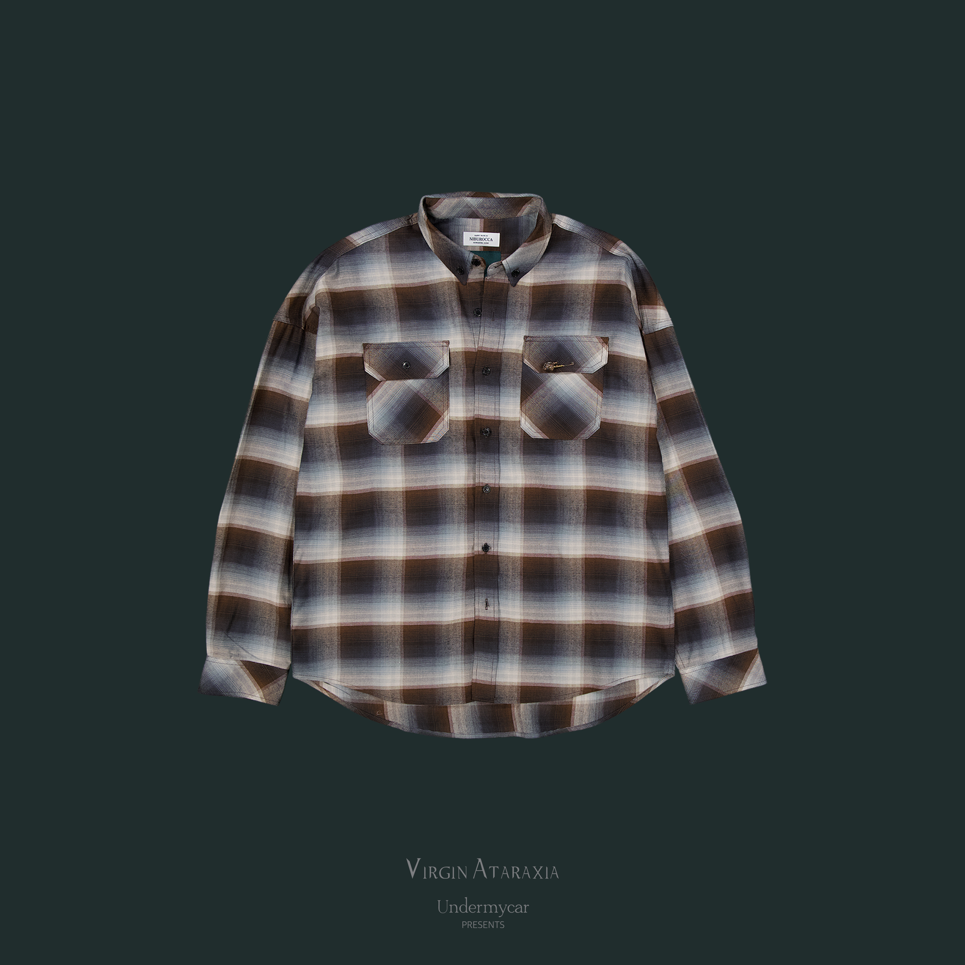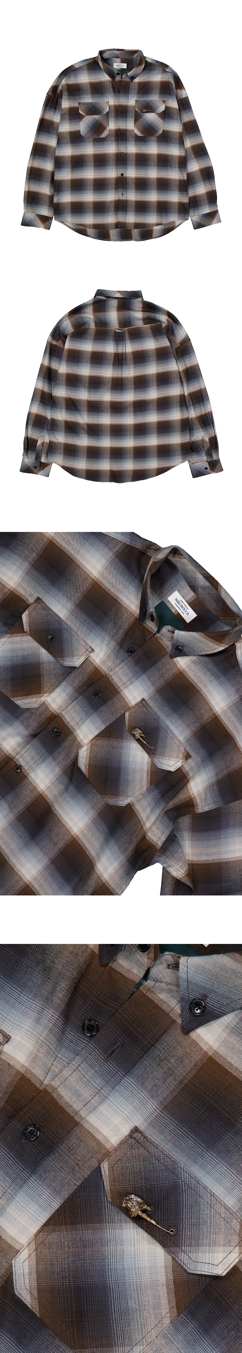 재팬 패브릭을 사용하여 제작되었으며 전면부 포켓에 장미 디테일의 핀으로 포인트를 준 체크 셔츠입니다.