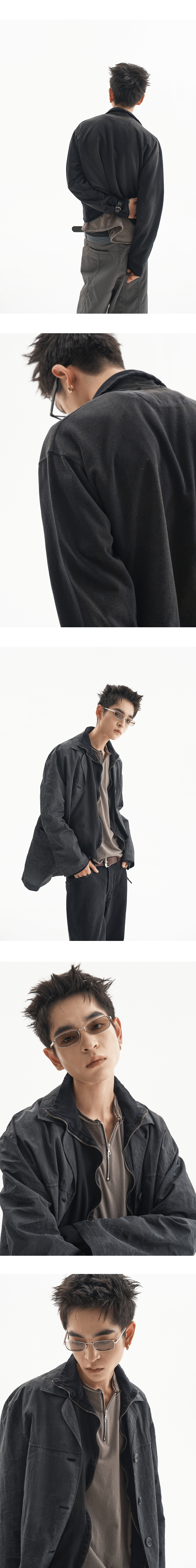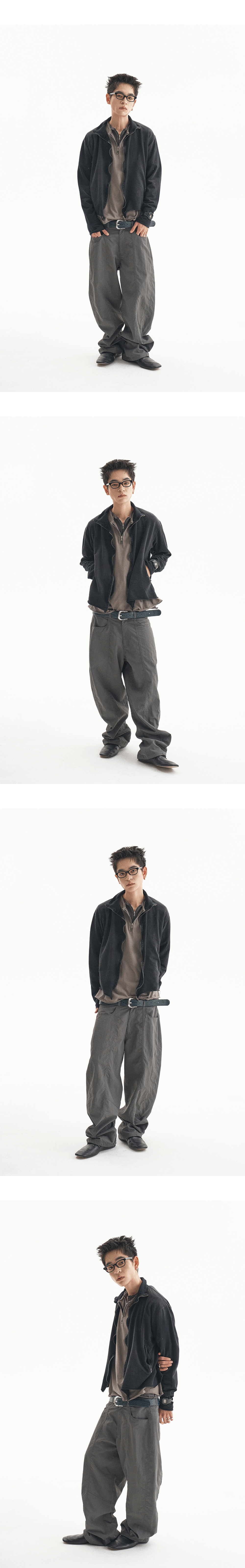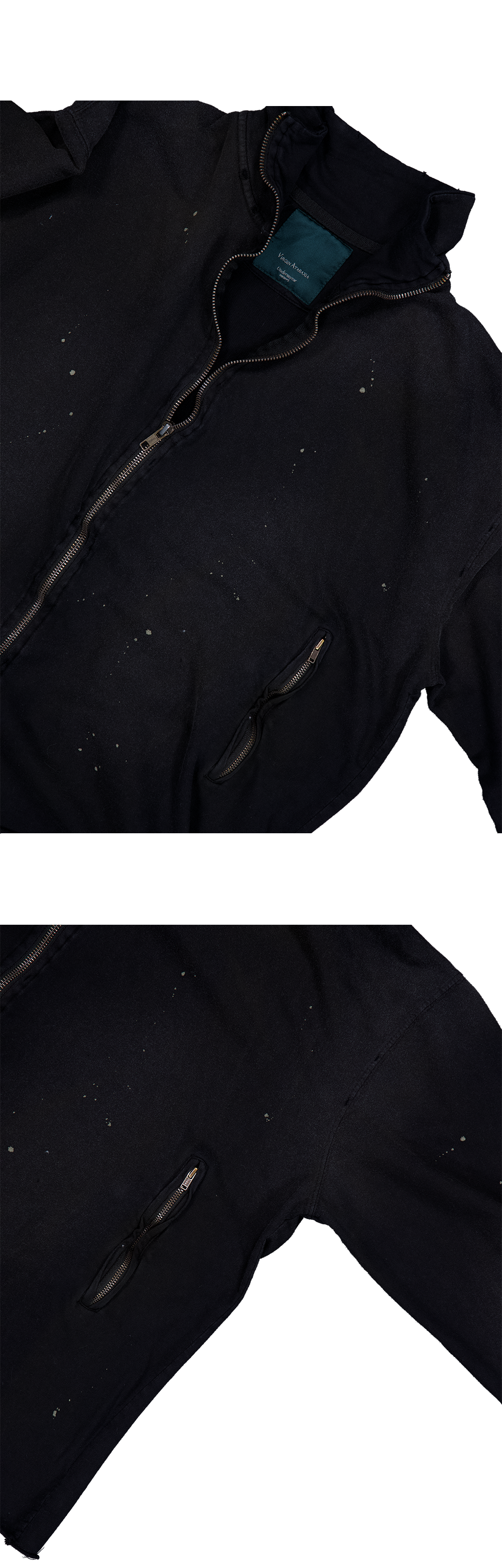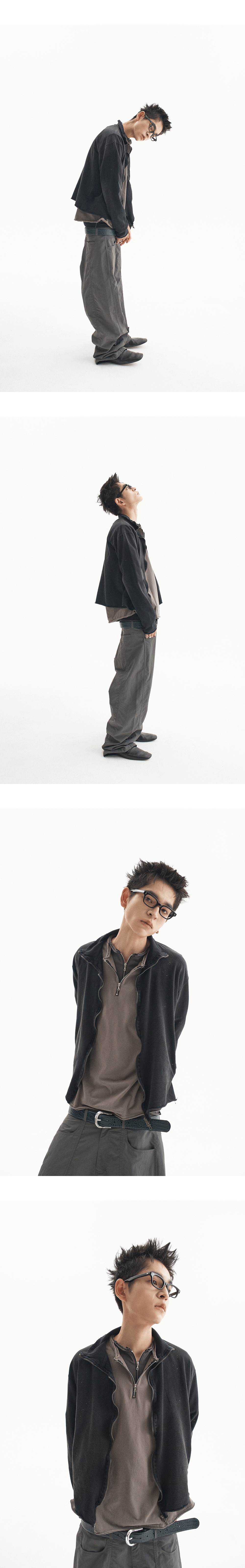 워싱으로 인한 물결 모양의 지퍼를 포인트로 한 슬림한 집업에 그런지한 디테일을 추가하여 제작하였습니다.