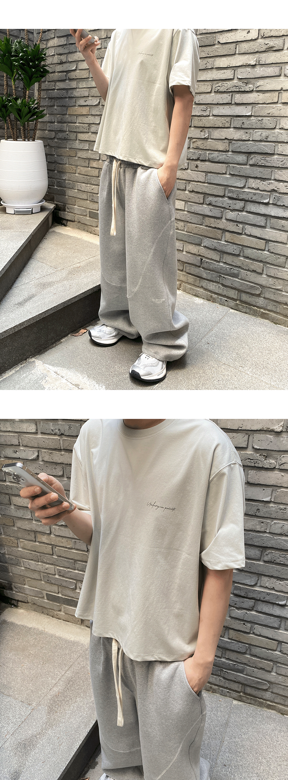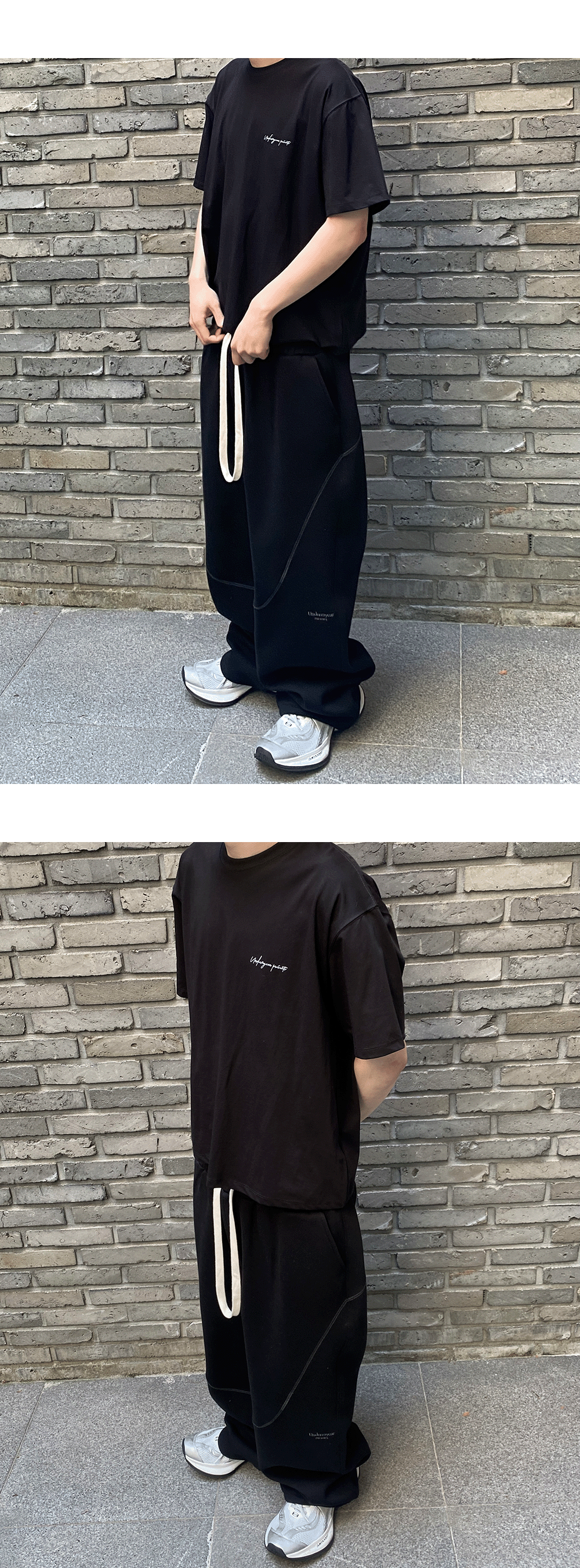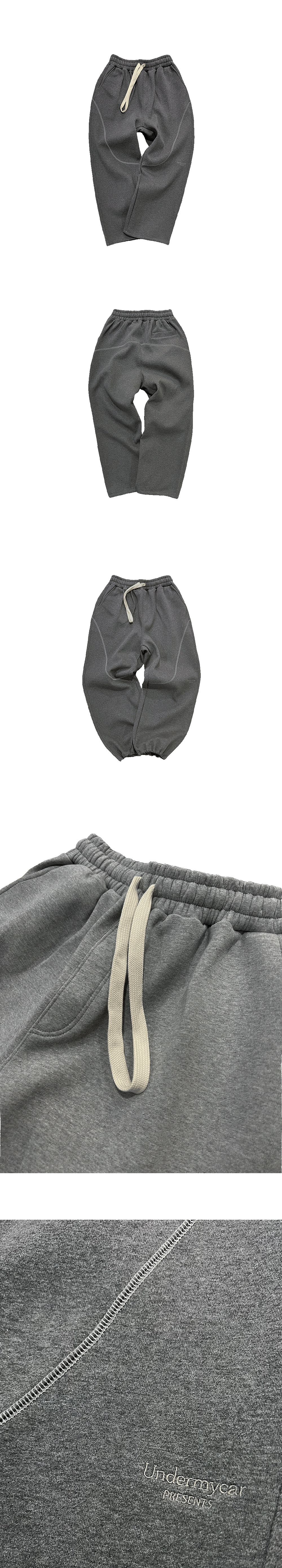 MU.112 Original Logo Curve Line Stitch Bonded Sweat Pants Charcoal