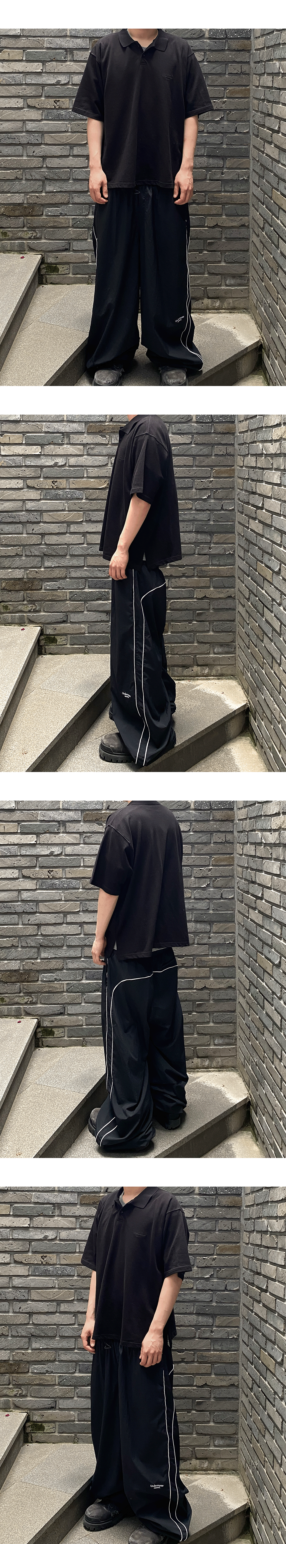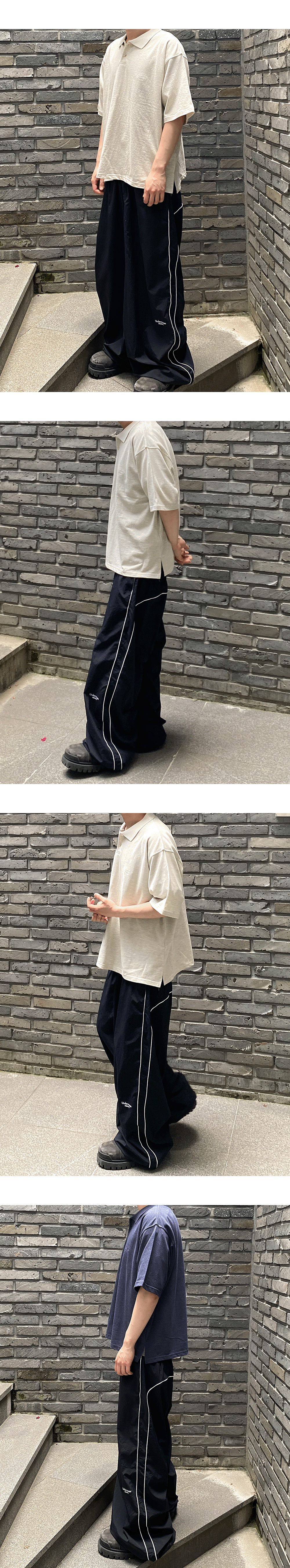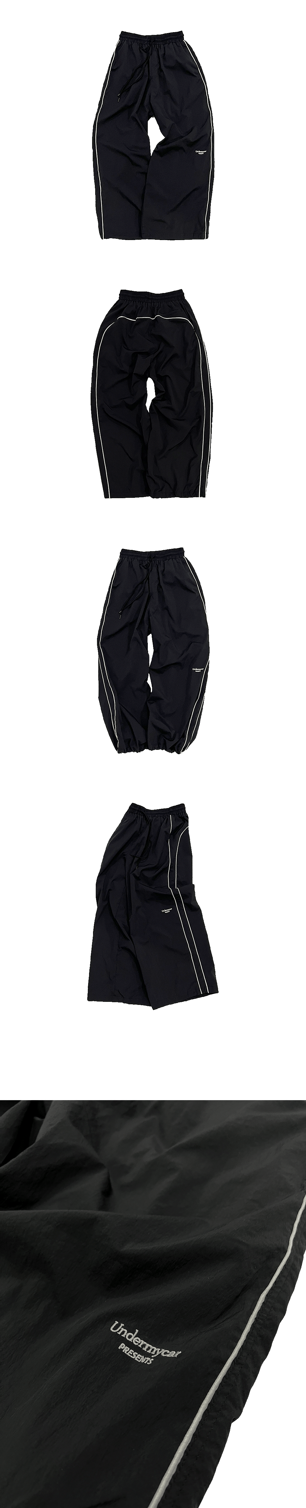 MU.126 Original Logo Piping Line Nylon Pants Black