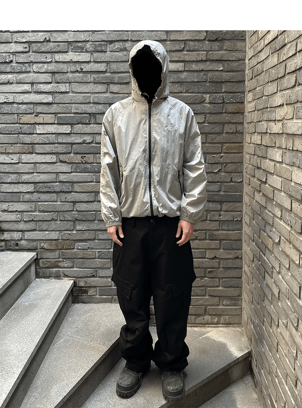 MU.105 Anti Fxxking Logo Play Regular Fit Nylon Windbreaker Gray