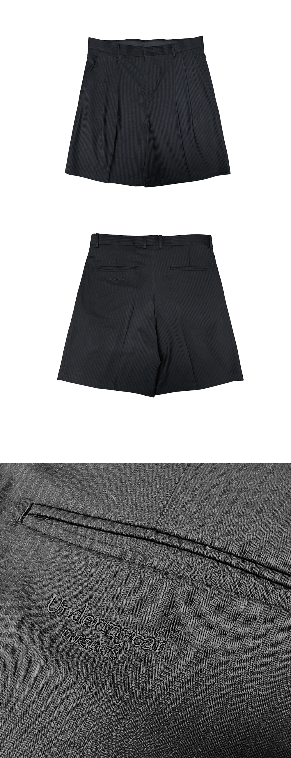 MU.108 Anti Fxxking Logo Play Two Tuck Wide Half Slacks Black