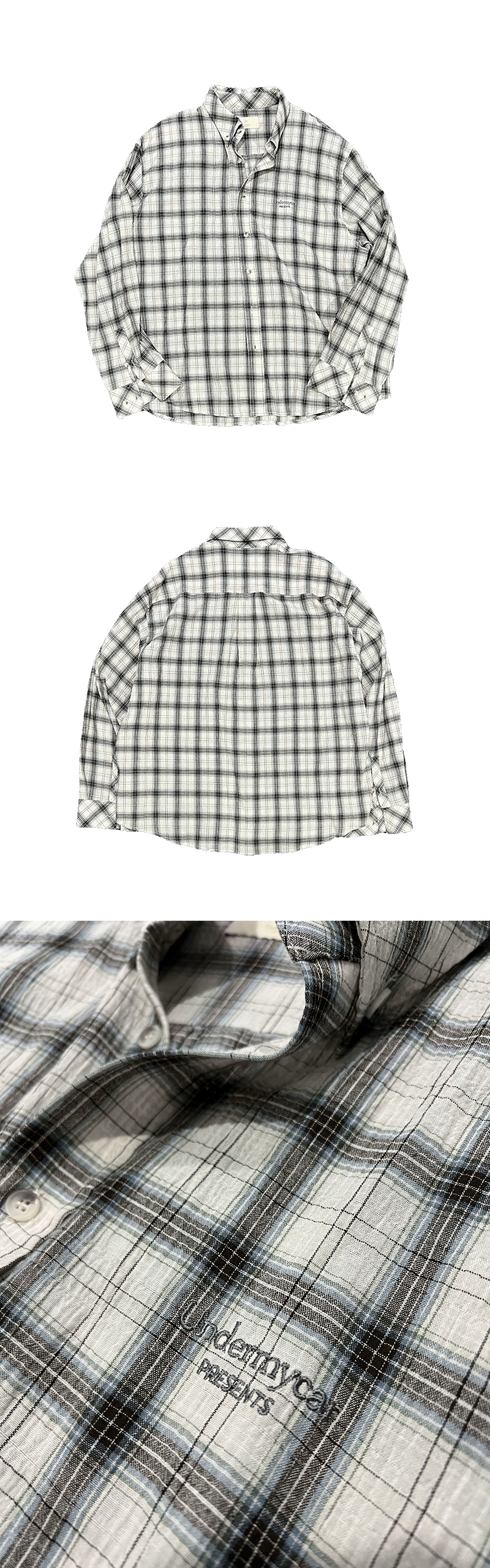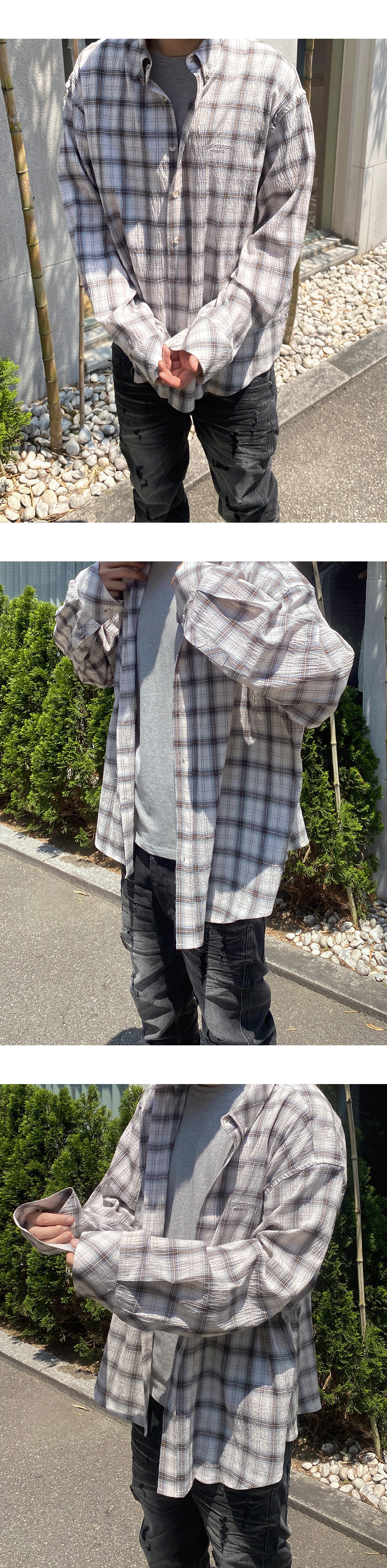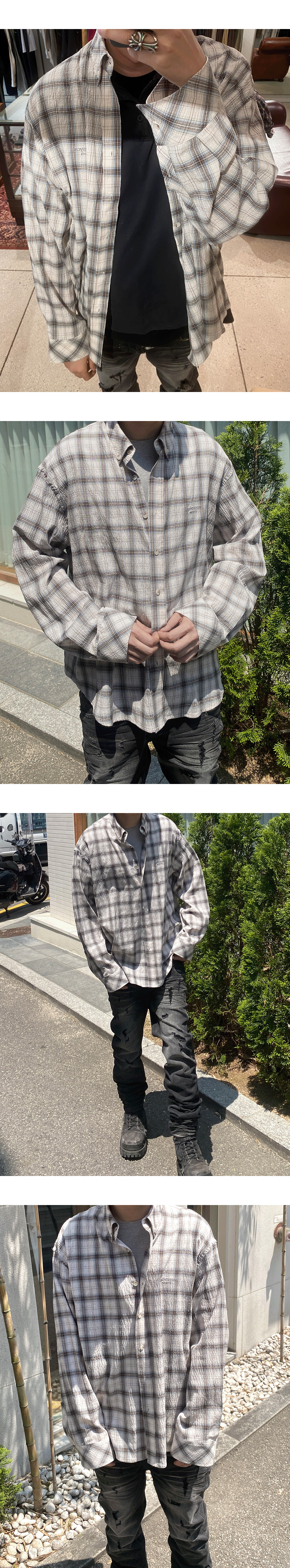 MU.118 Original Logo Basic Long Sleeve Check Shirts Beige Blue
