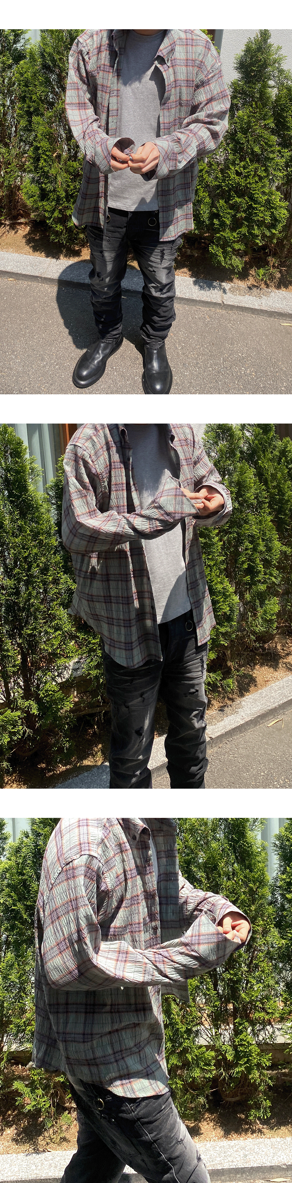 MU.123 Original Logo Basic Long Sleeve Check Shirts Khaki