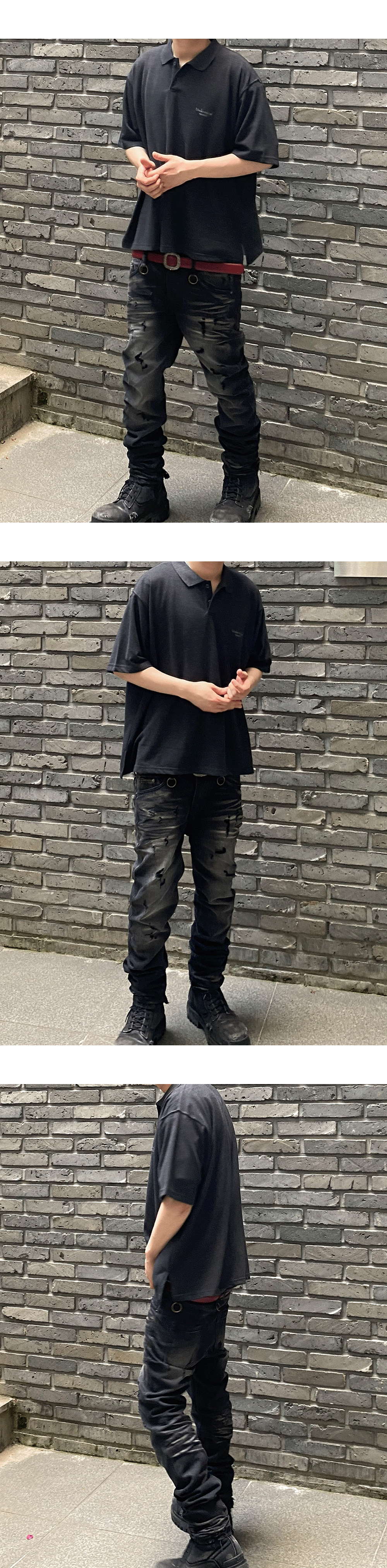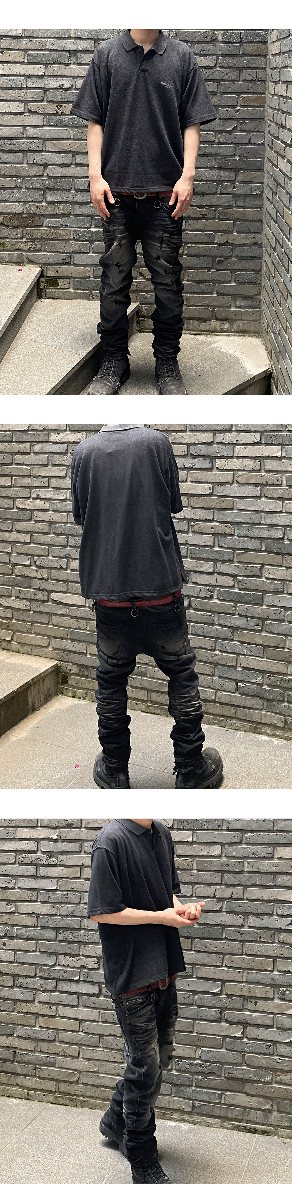 MU.125 Original Logo Oversized Crop PK Shirts Charcoal