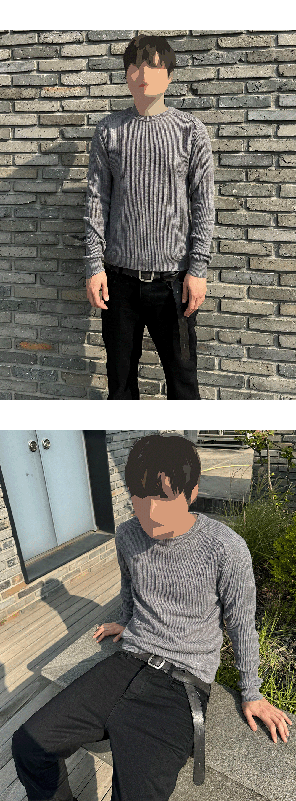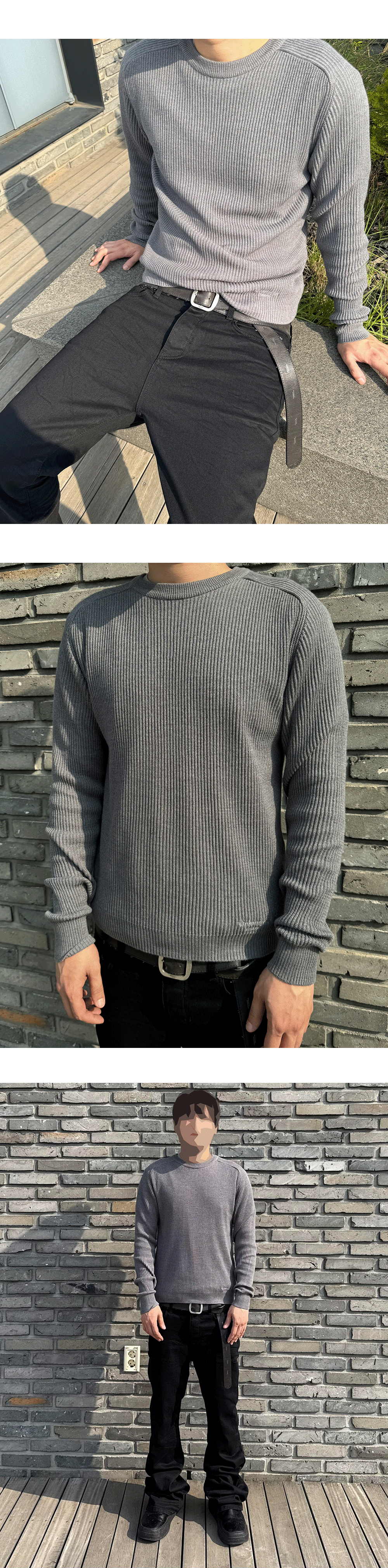 MU.141 Classic Logo Rib Slim Knit Sweater Melange Gray