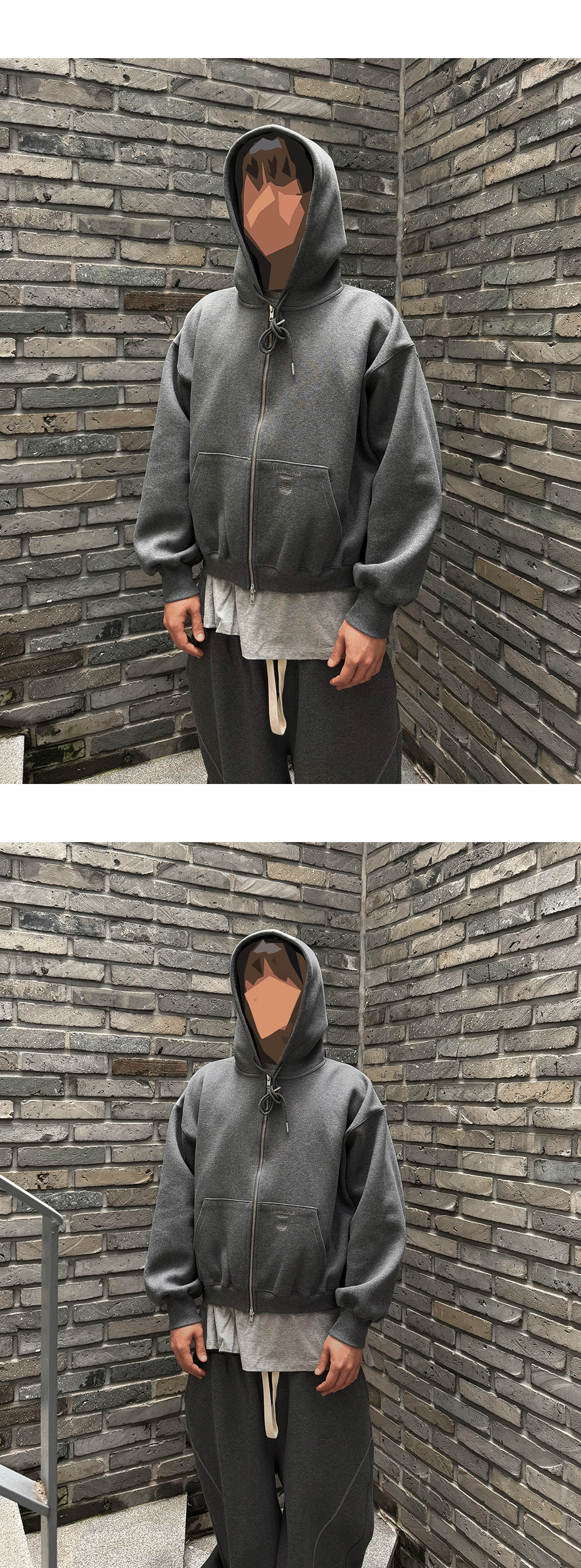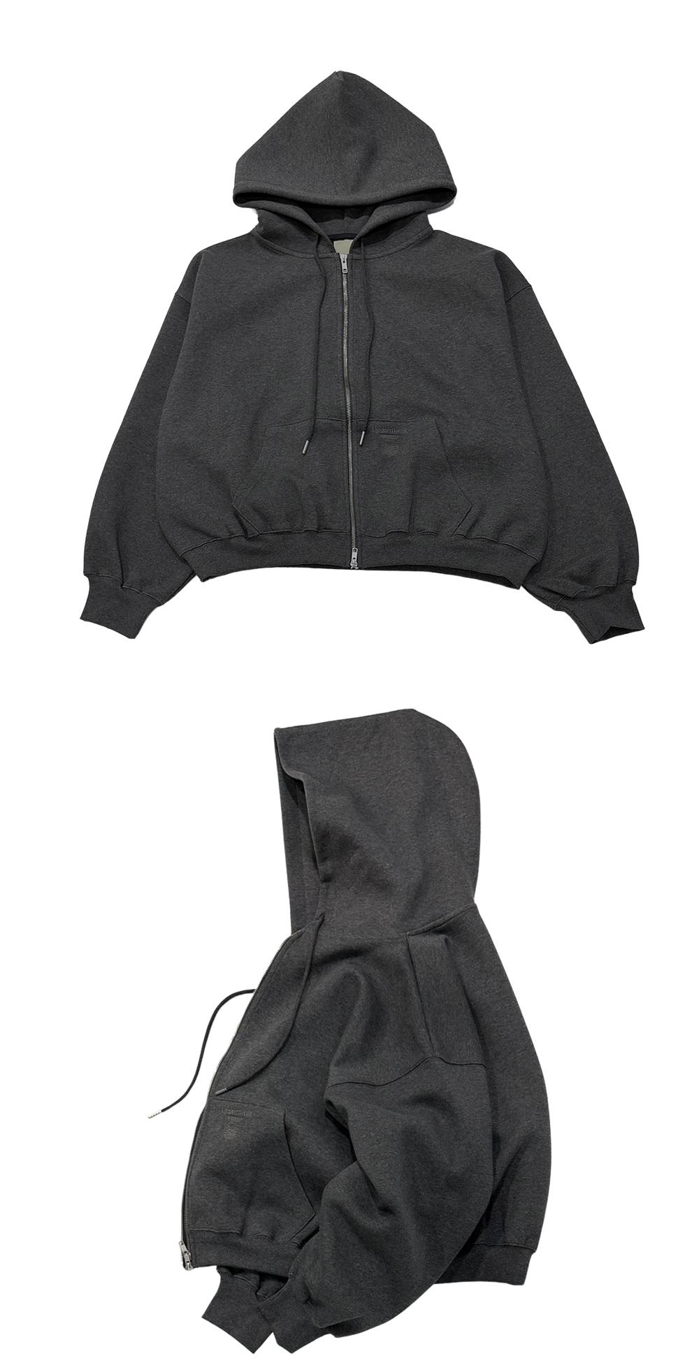 MU.148 Combi Bonded Crop Sweat Hood Zip-Up Charcoal