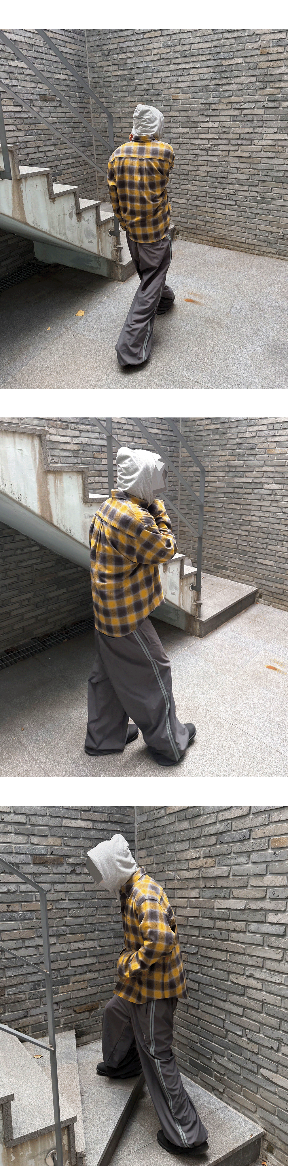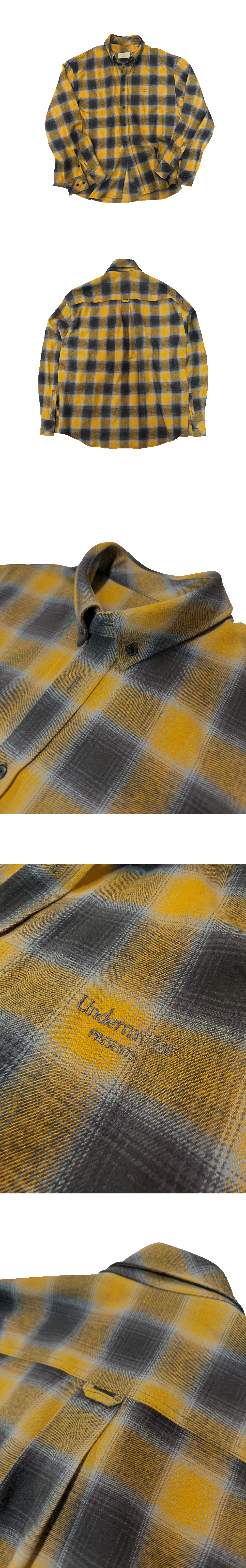 MU.154 Classic Logo Basic Long Sleeve Flannel Shirts Mustard Gray