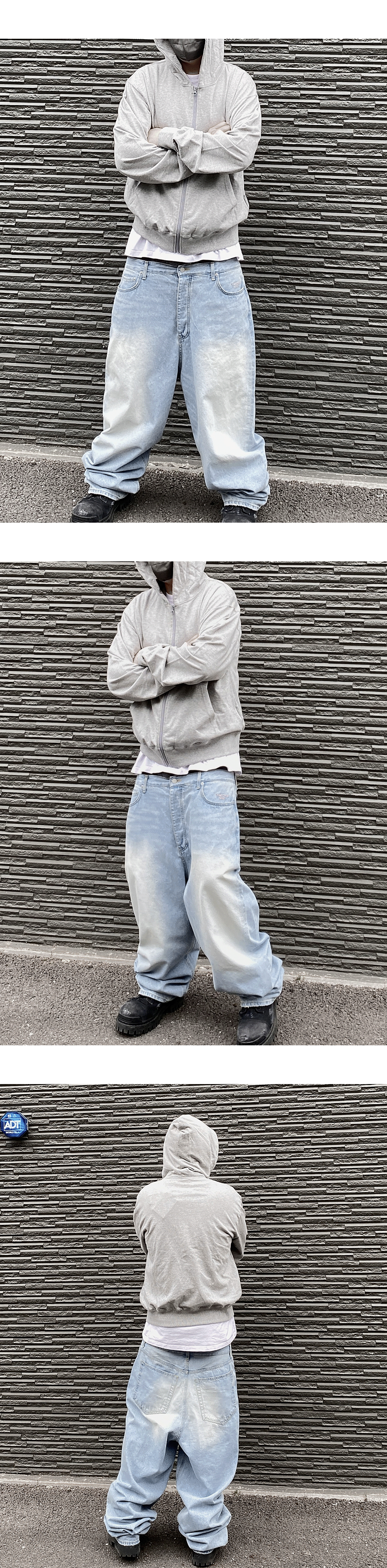 MU.31 Anti Fxxking Logo Play Brush Washed Wide Jeans Sky Blue