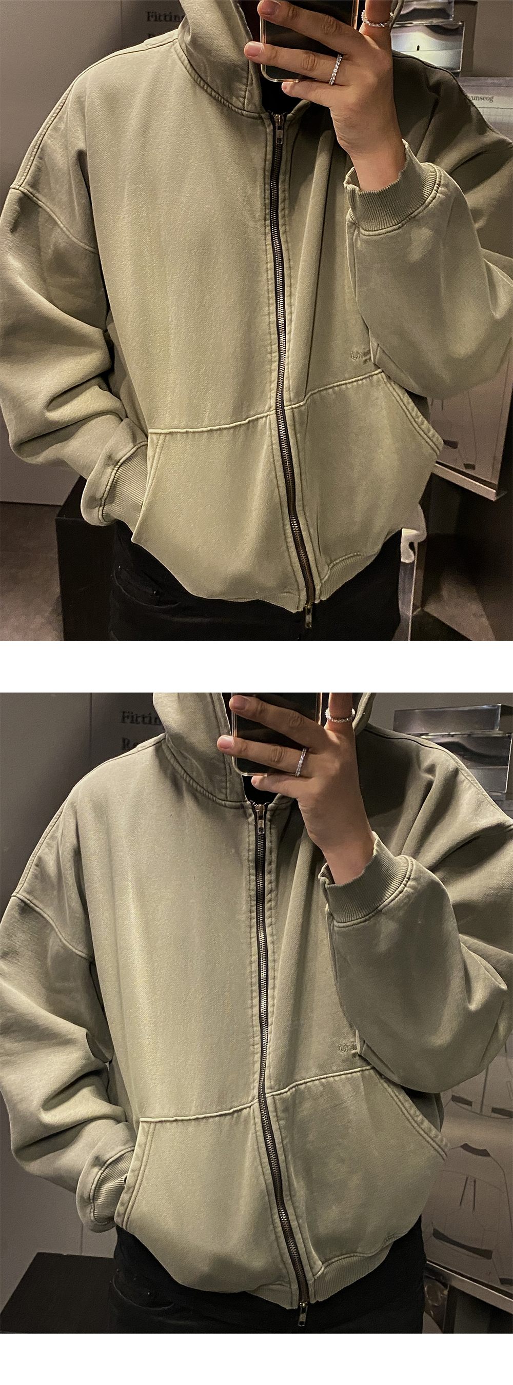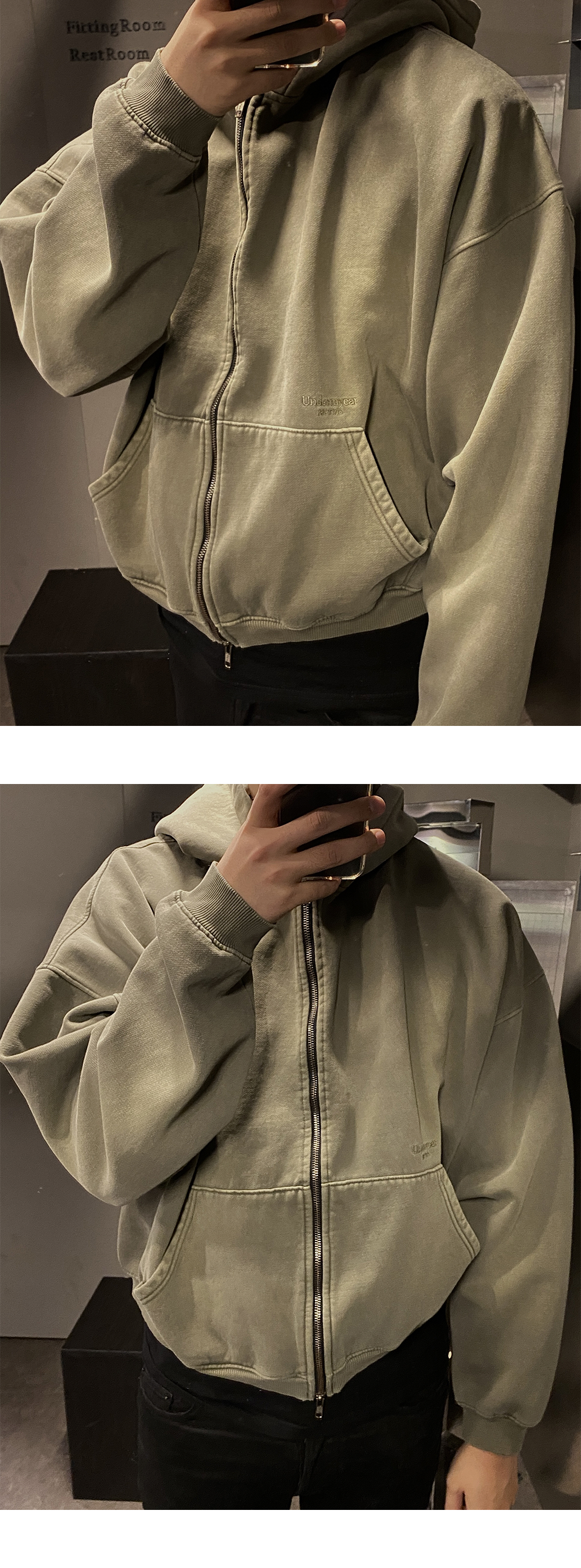 MU.69 Anti Fxxking Logo Play Vintage Brush Washed Hood Zip up Khaki
