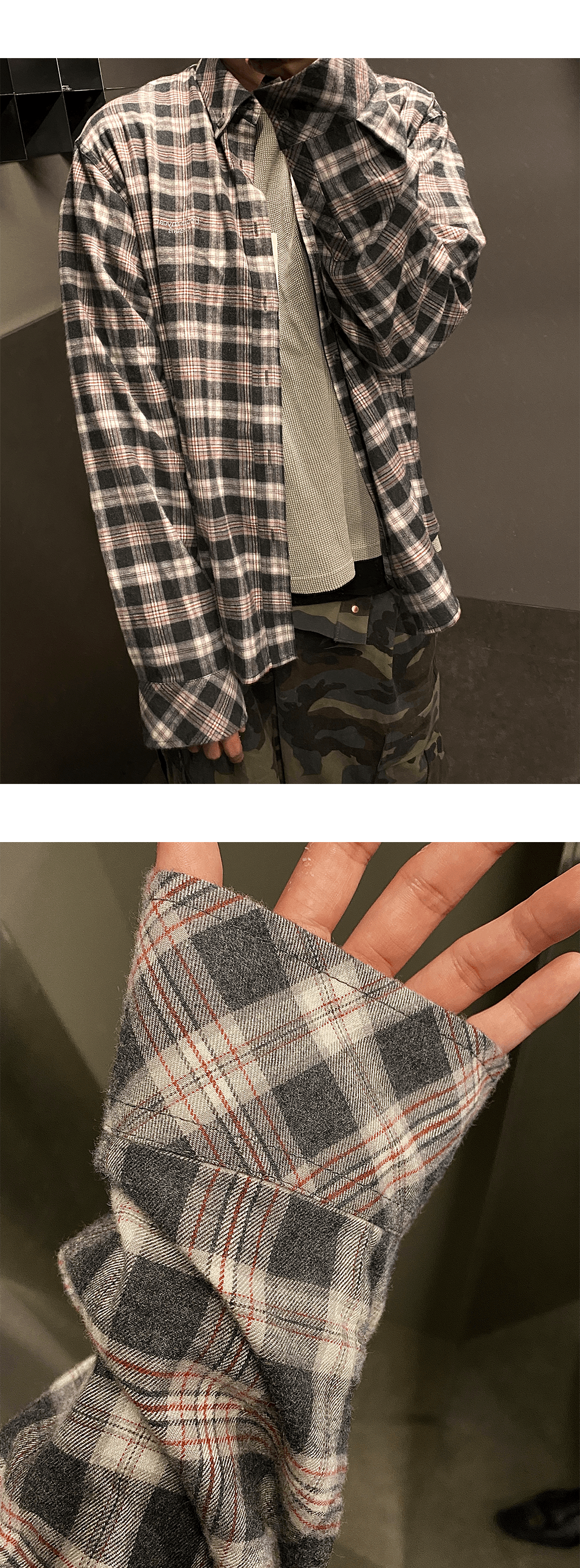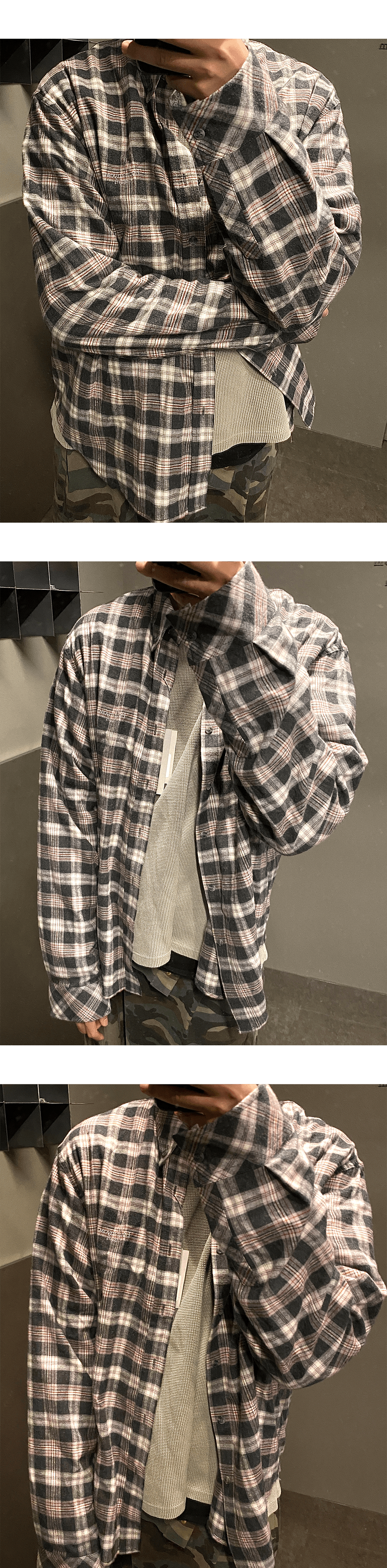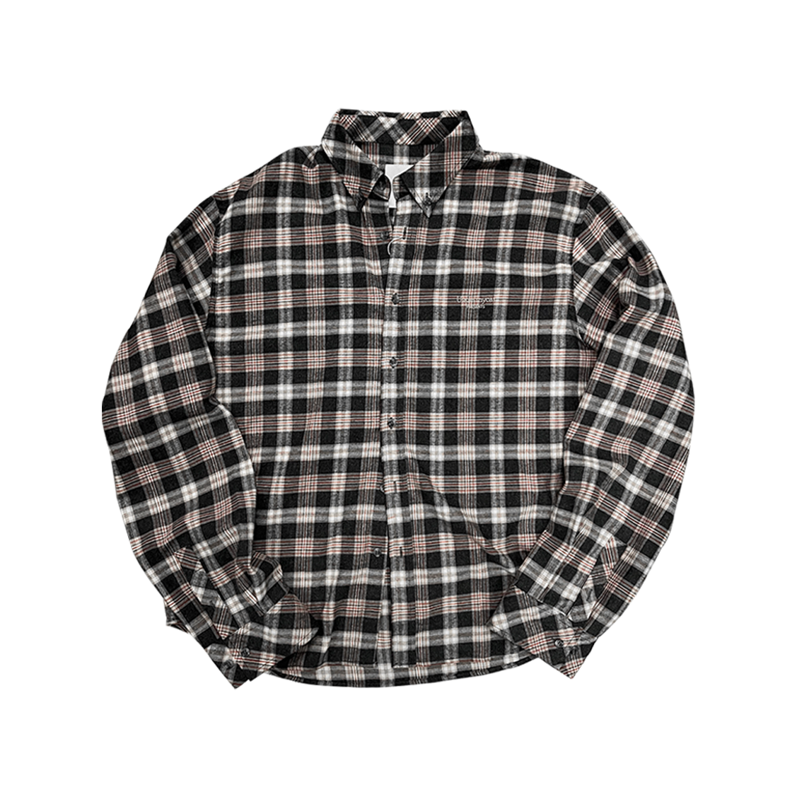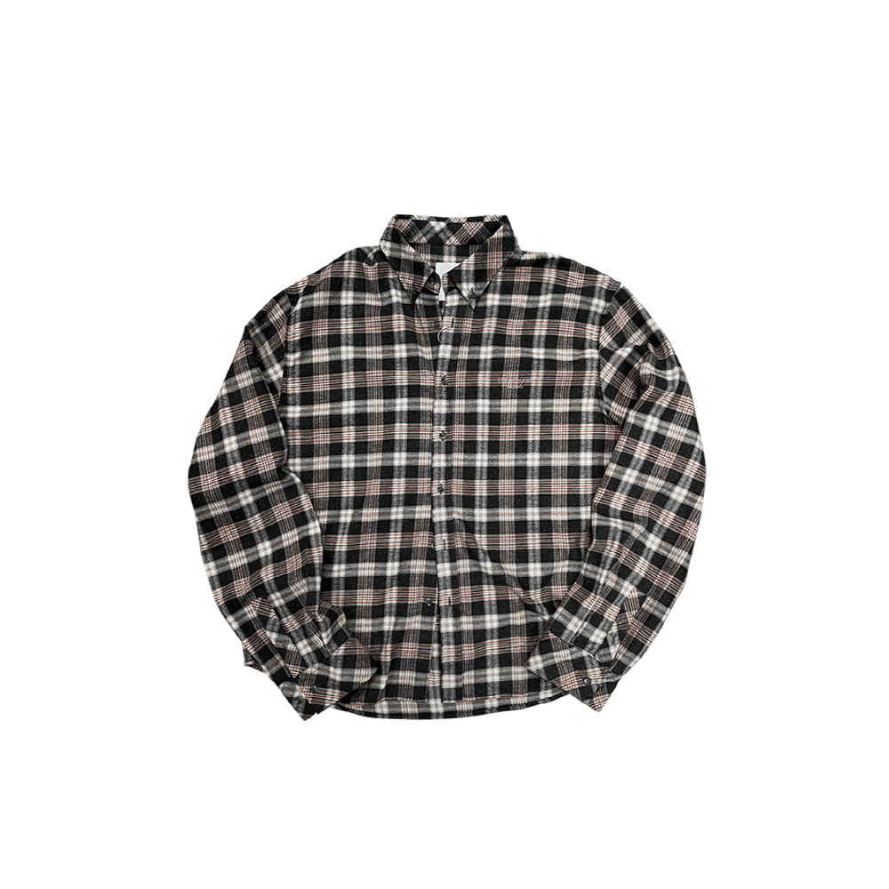 MU.75 Anti Fxxking Logo Play Basic Long Sleeve Flannel Shirts Burgundy Black