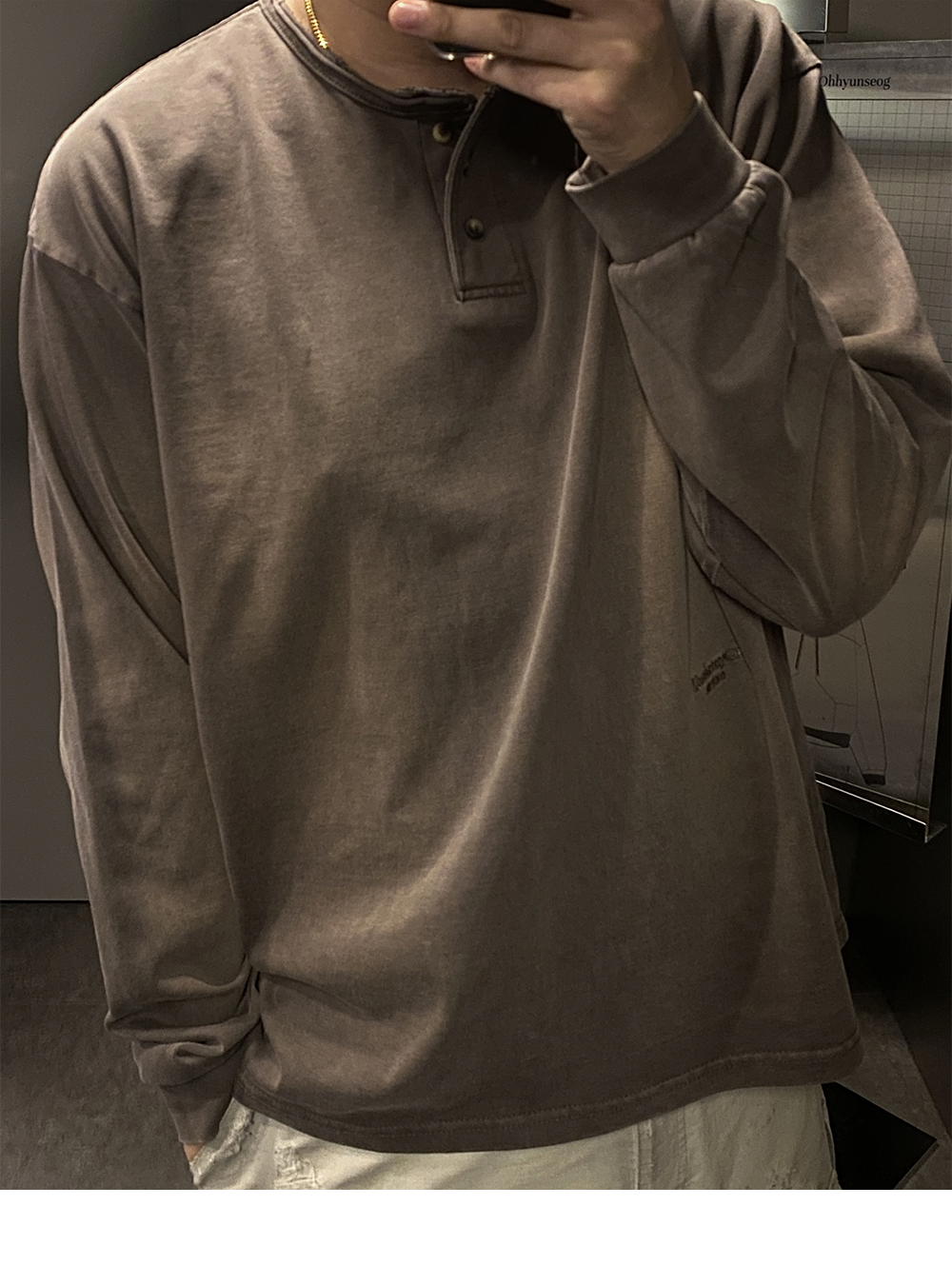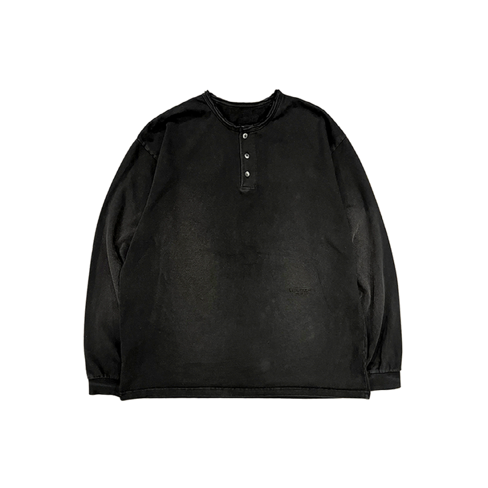 MU.89 Anti Fxxking Logo Play Brush Washed Henley Shirts Black