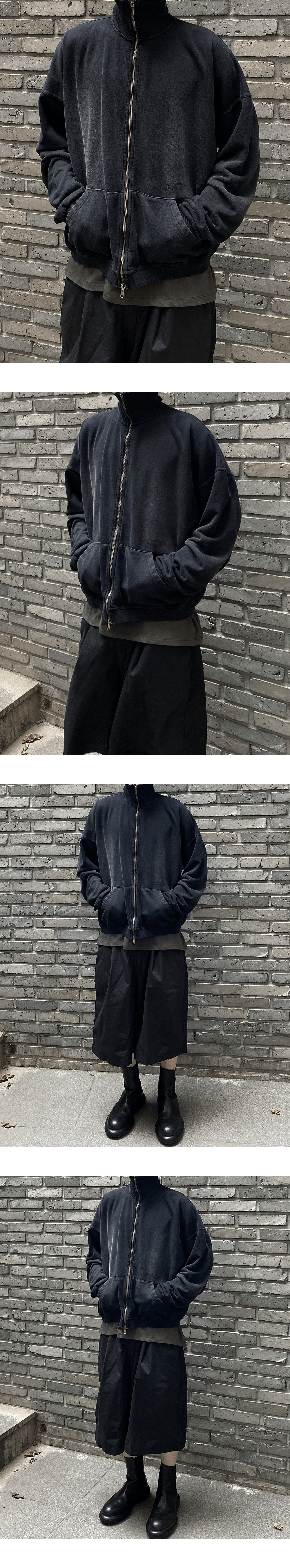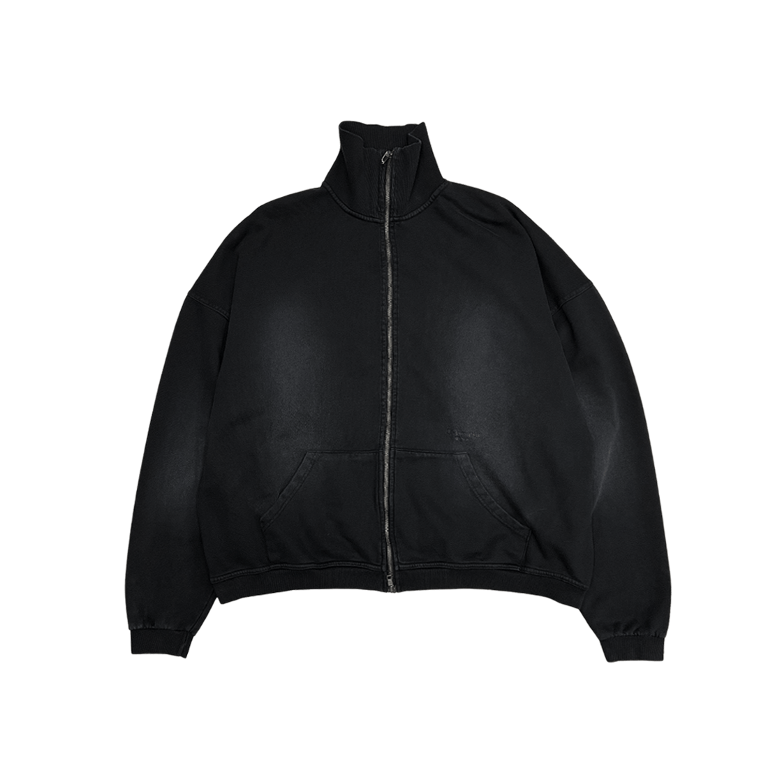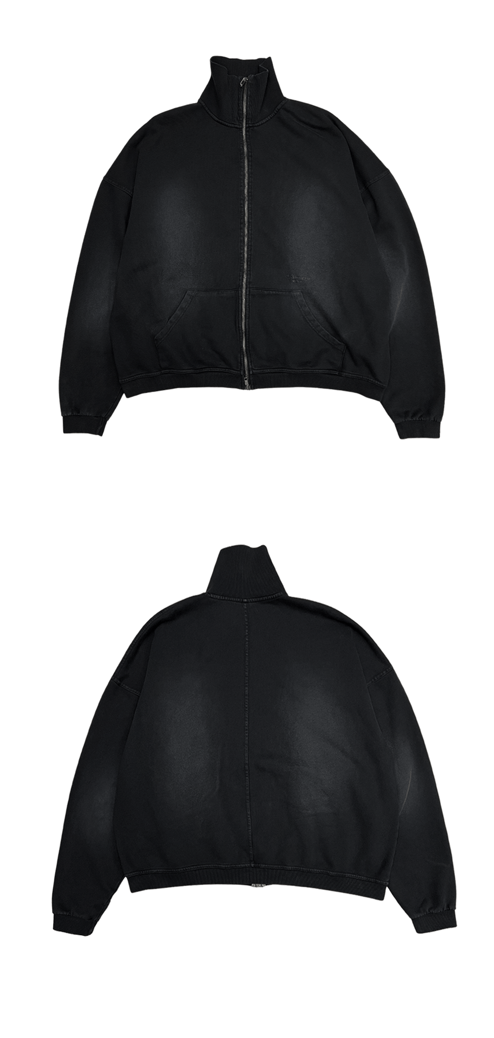 MU.94 Anti Fxxking Logo Play Brush Washed High Neck Zip-Up Black