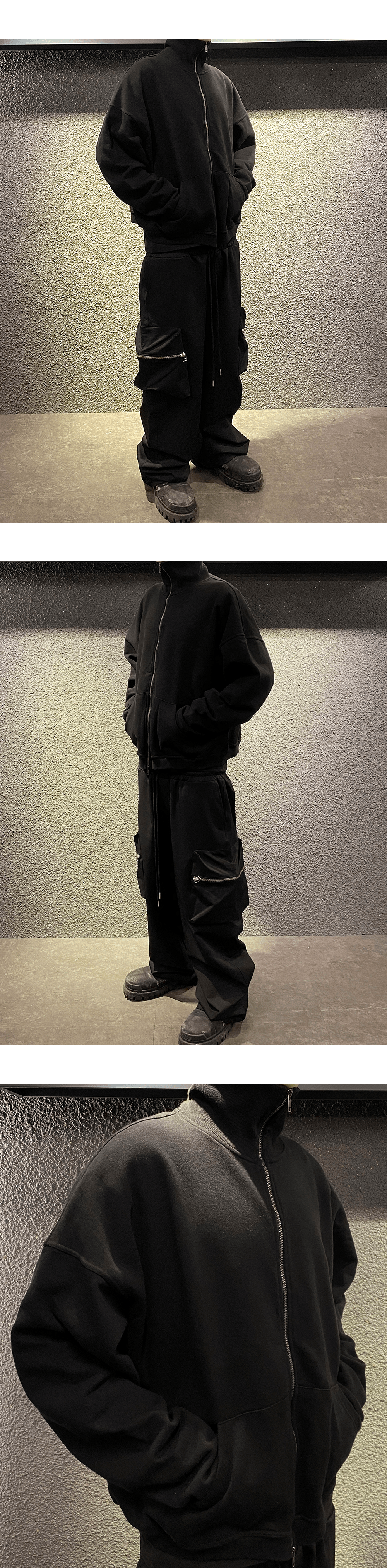 MU.95 Anti Fxxking Logo Play High Neck Cotton Zip-Up Black