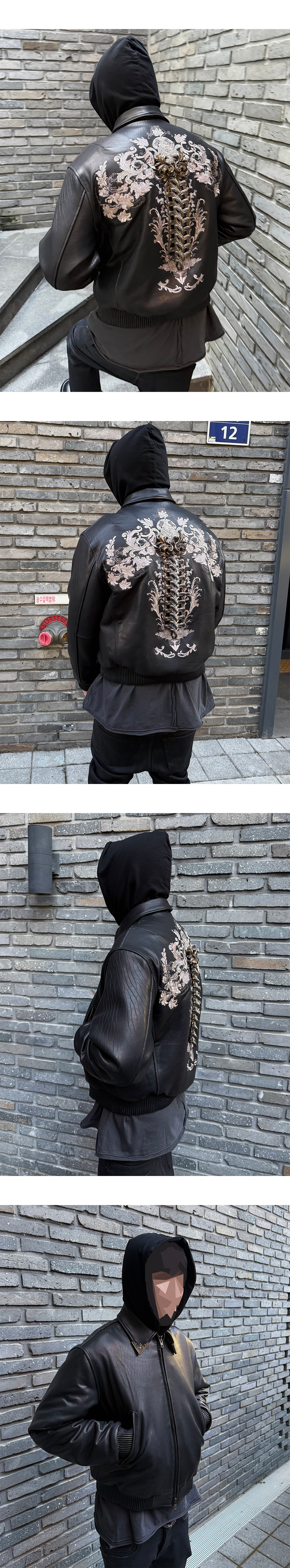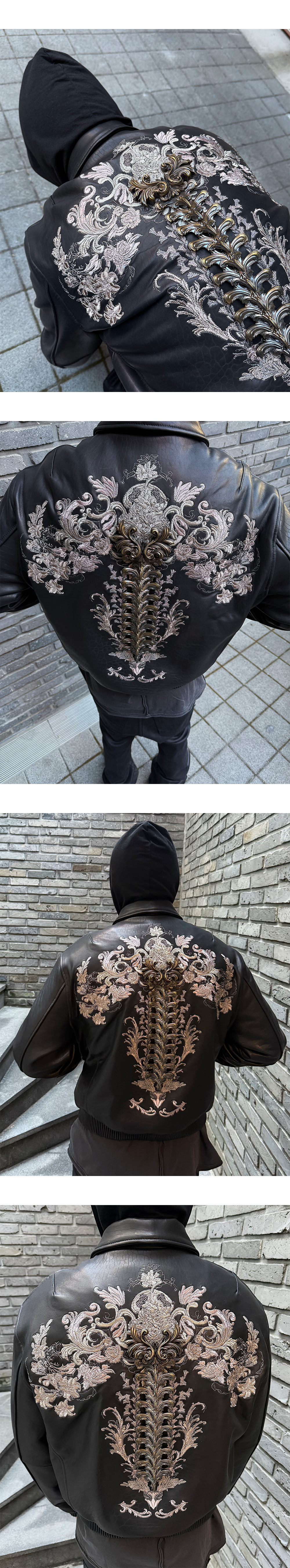 양가죽 위에 과장된 6도 자수로 마감된 블루종 위에