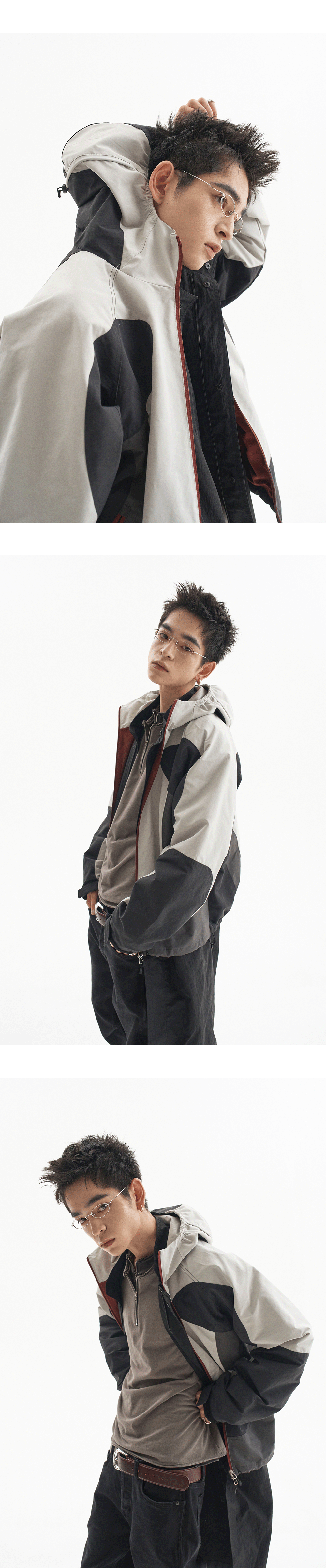 레드 포인트를 준 여러 패널로 완성된 쉘 파카입니다.