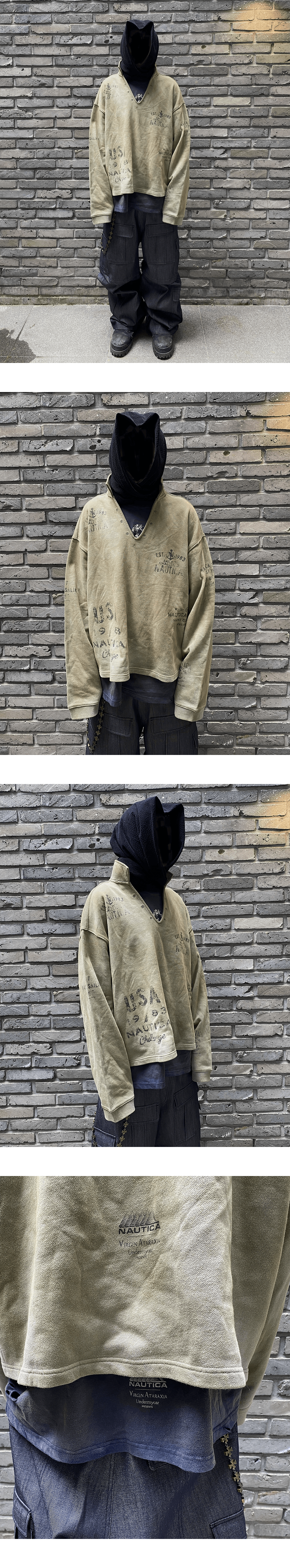 노티카 X 언더마이카 데미지드 오픈카라 풀오버