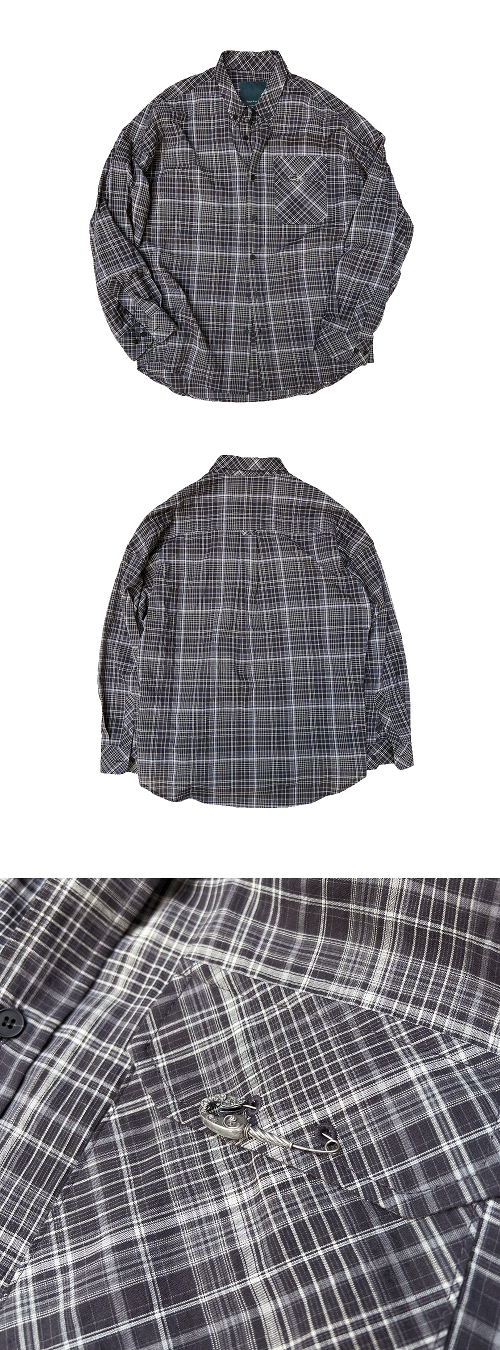 25SS FLORAL SAFETY PIN JAPANESE FABRIC TARTAN CHECK SHIRTS - LIGHT NAVY