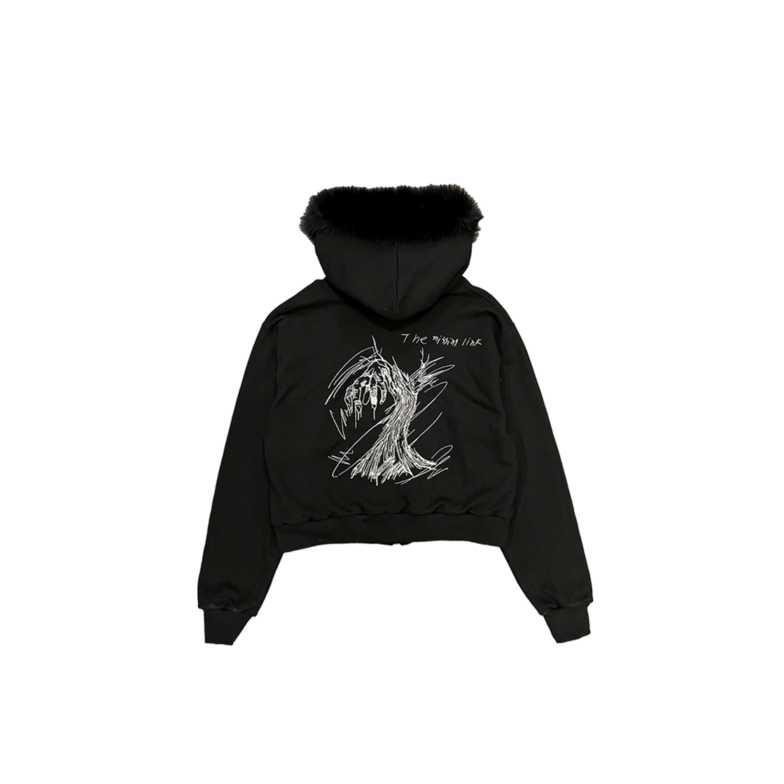 BLUE FOX FUR LINED EMBROIDERED ZIPPED HOODIE - BLACK