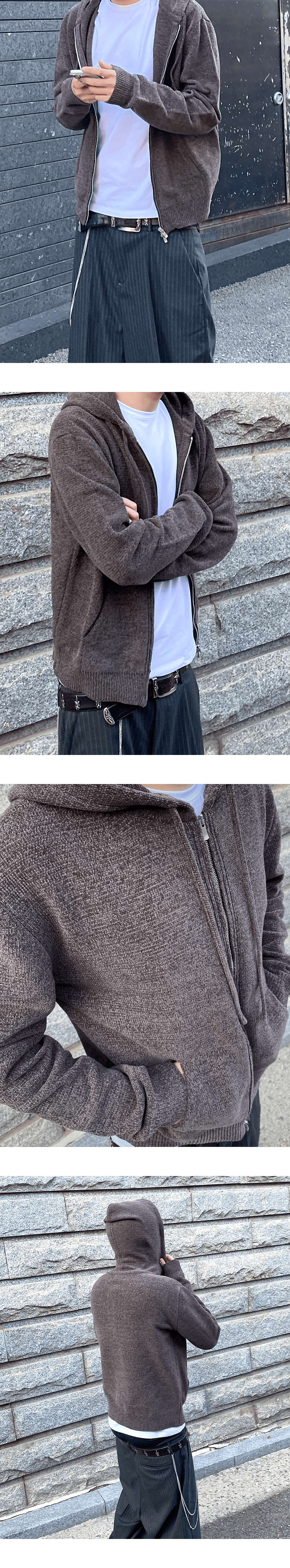 ASSASSIN VELVET YARN KNIT ZIPPED HOODIE - GRAY