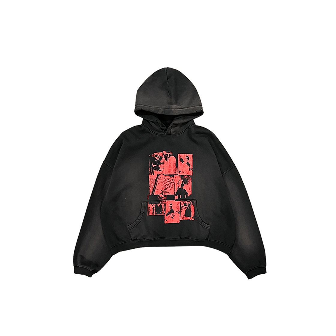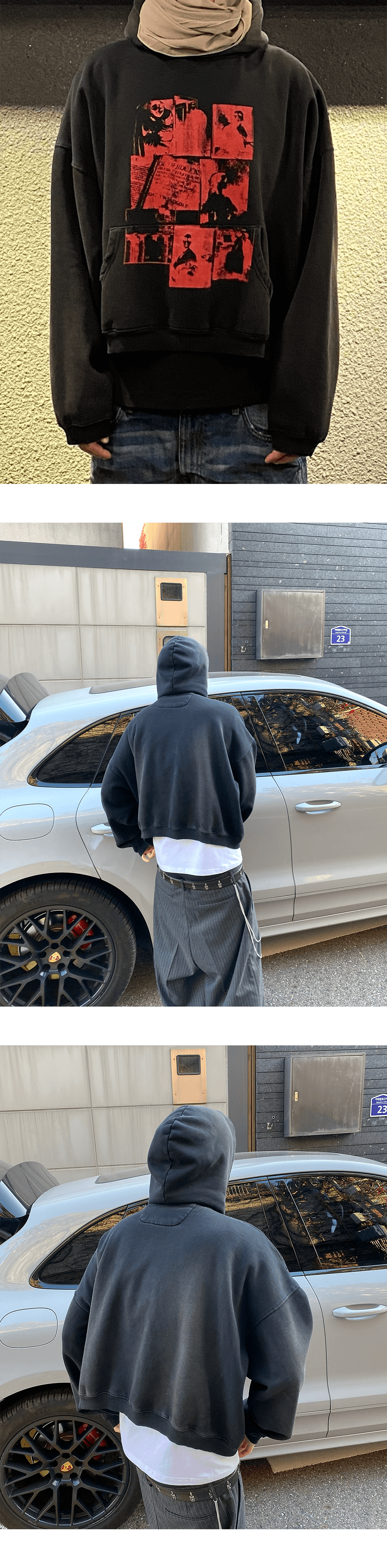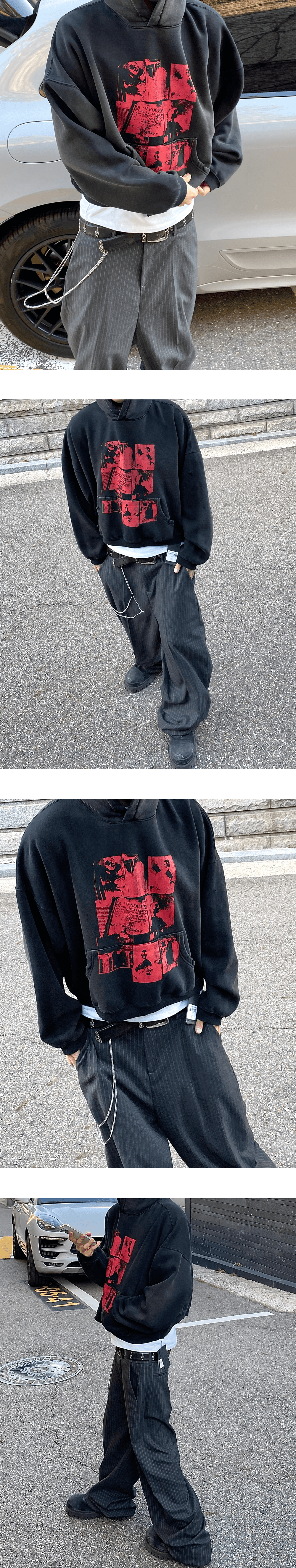 이번 시즌의 주요 아트웍들을 붉은색으로 얹은 후드티셔츠