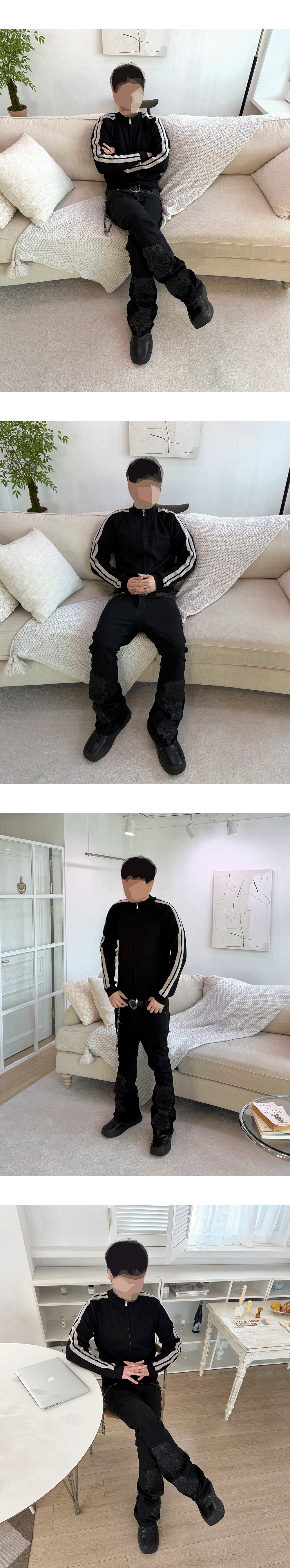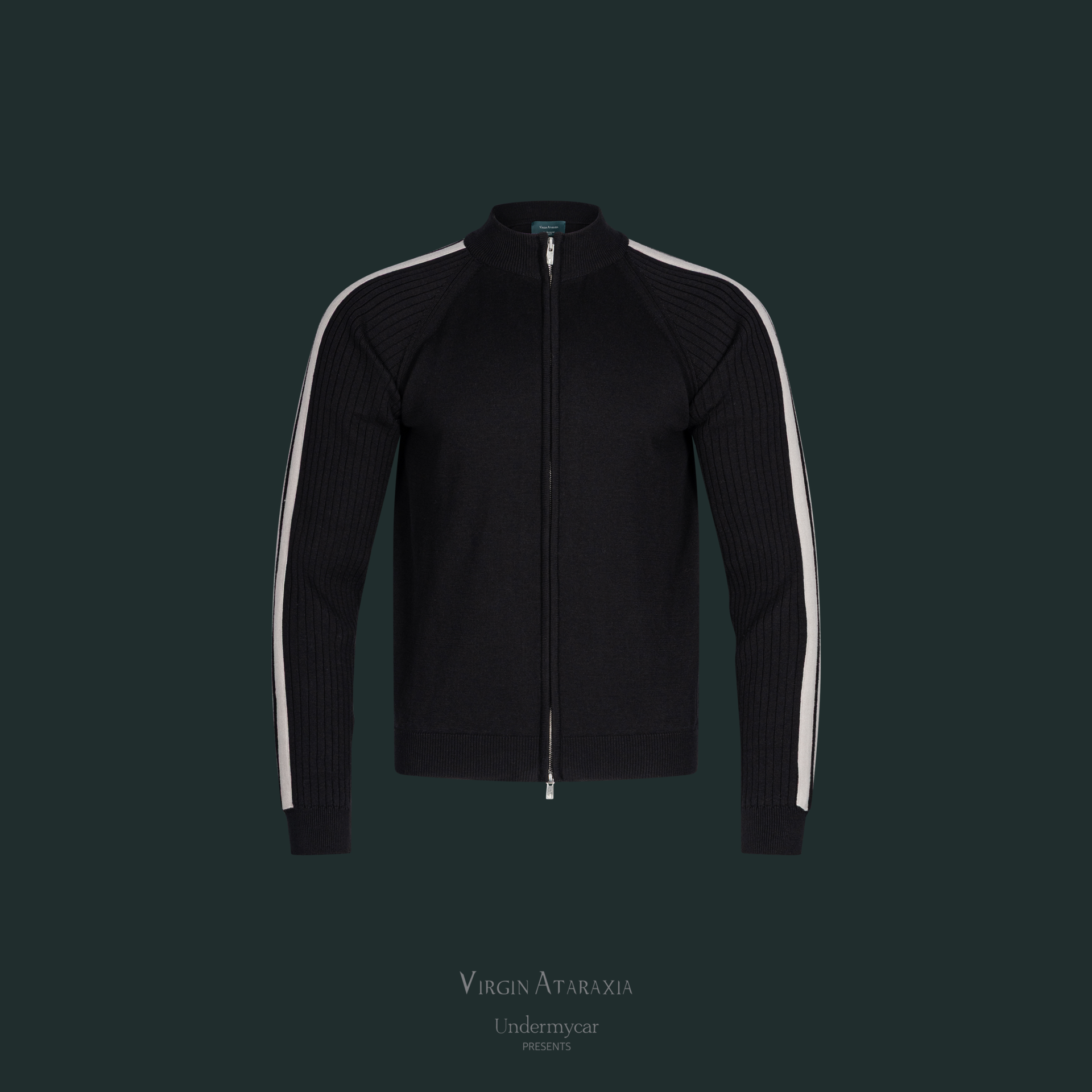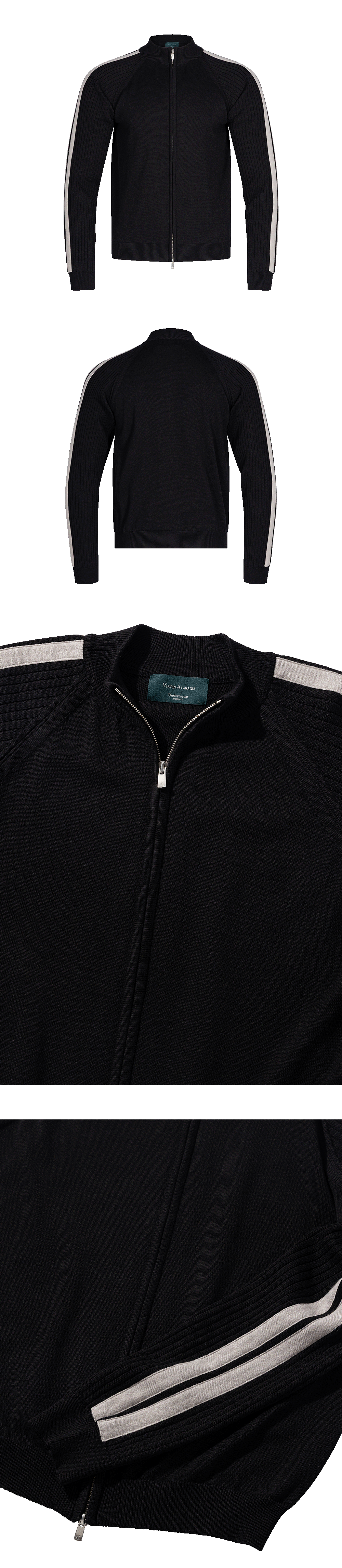 25FW DOUBLE LINE SLIM KNIT ZIP-UP - BLACK/BEIGE