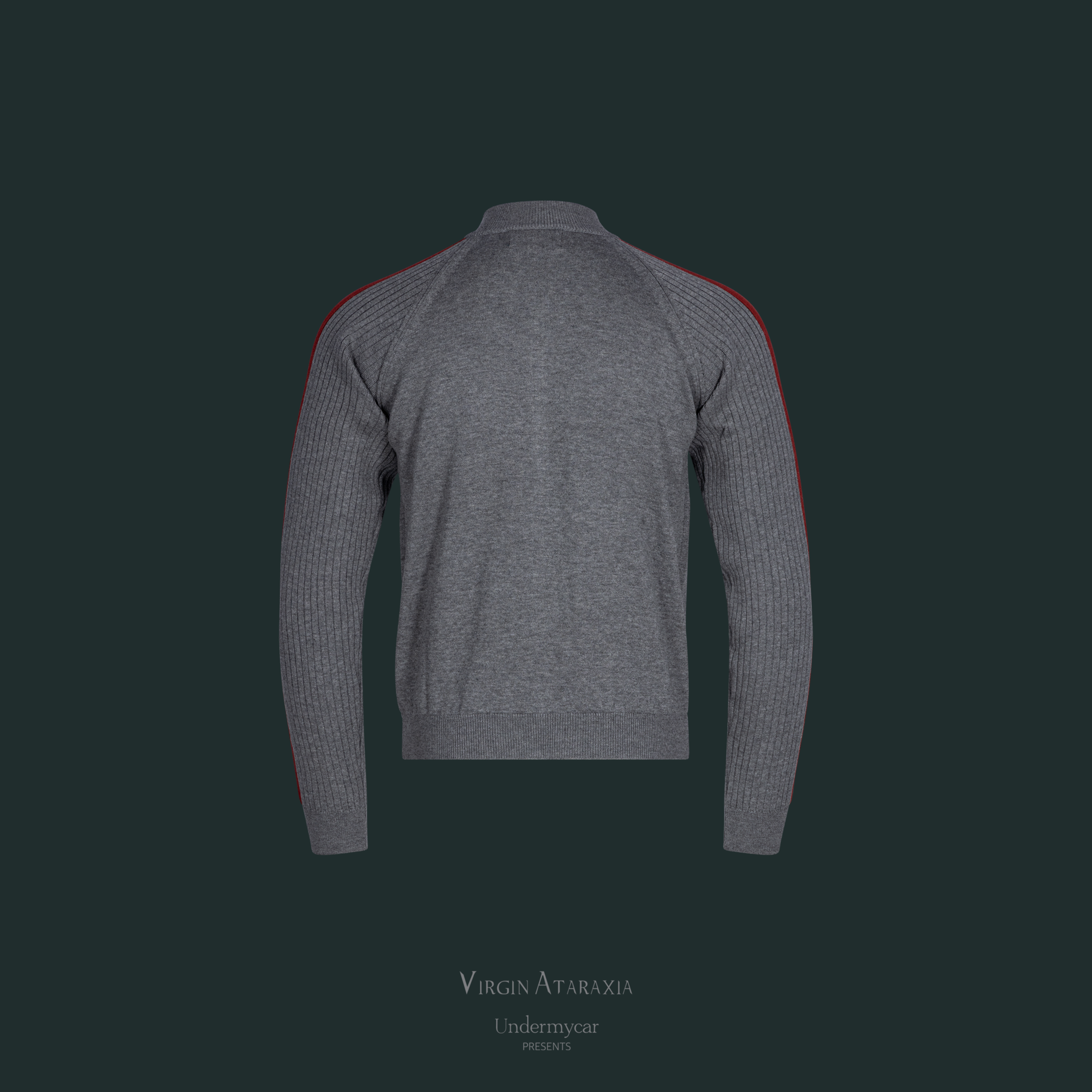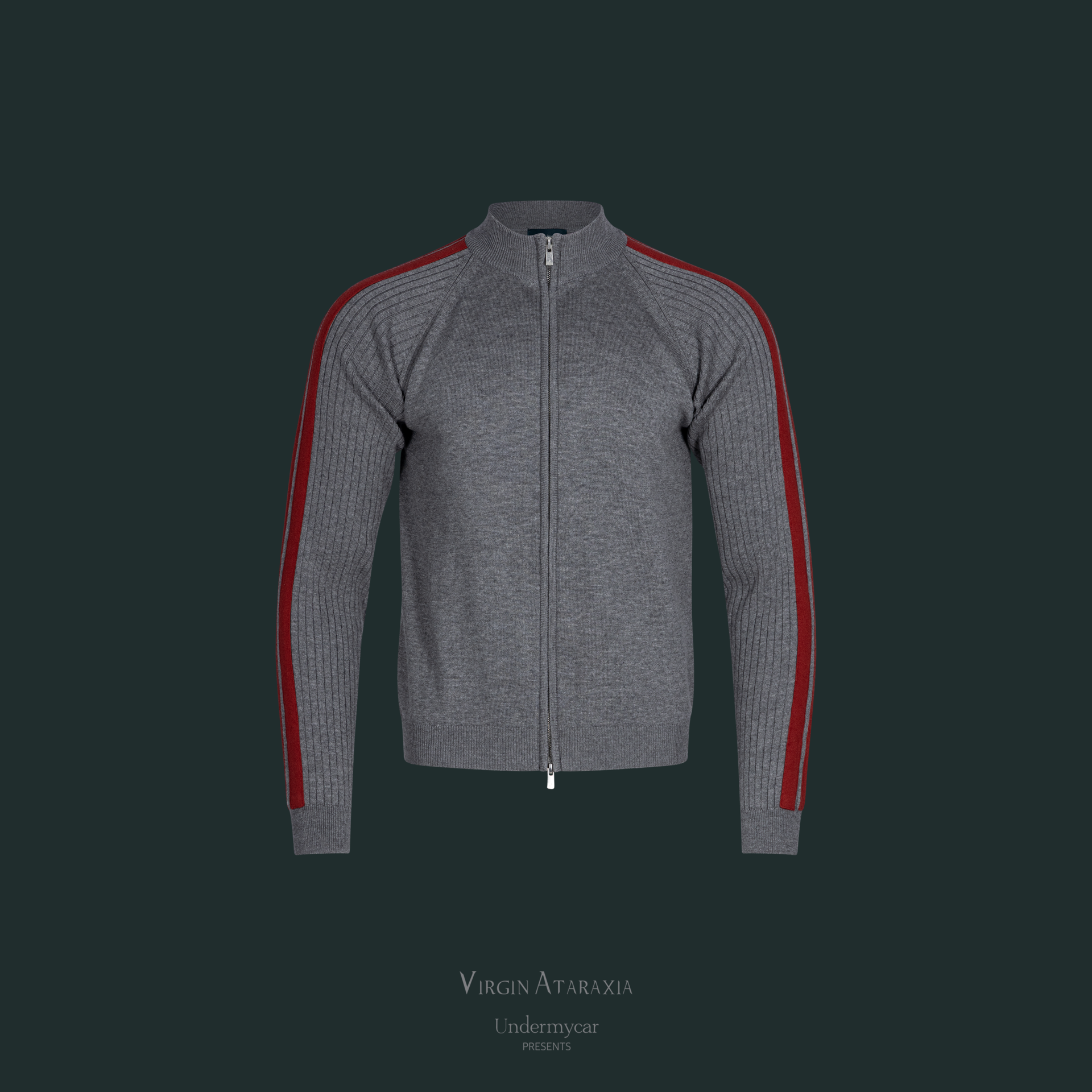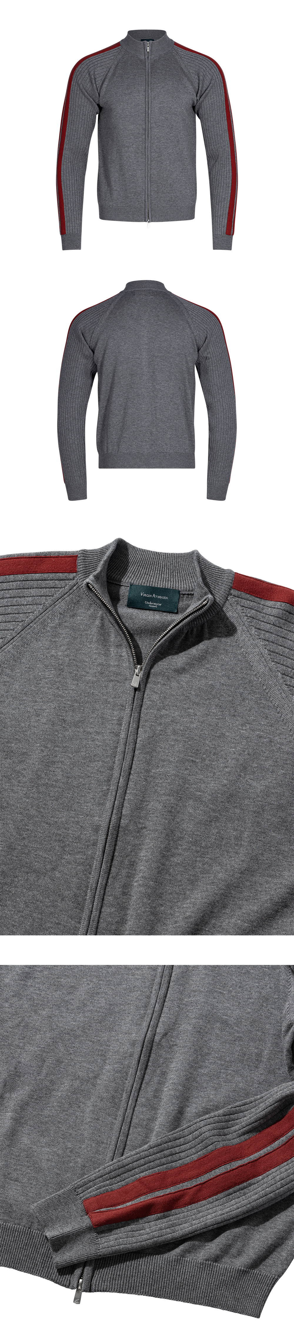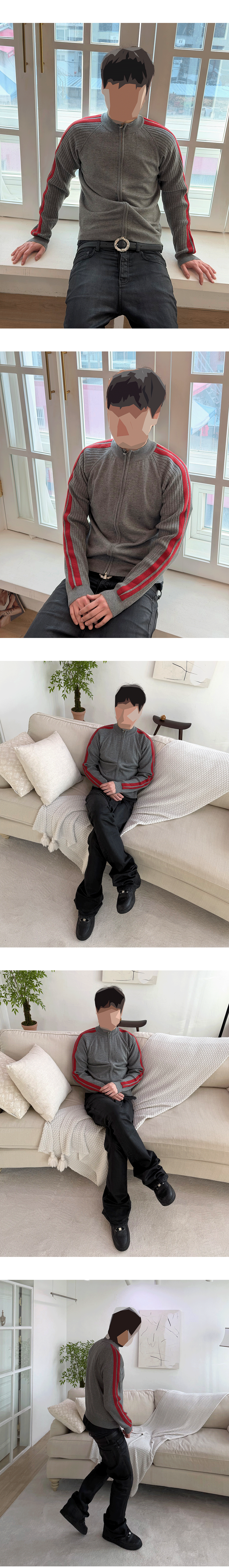 25FW DOUBLE LINE SLIM KNIT ZIP-UP - GRAY/RED