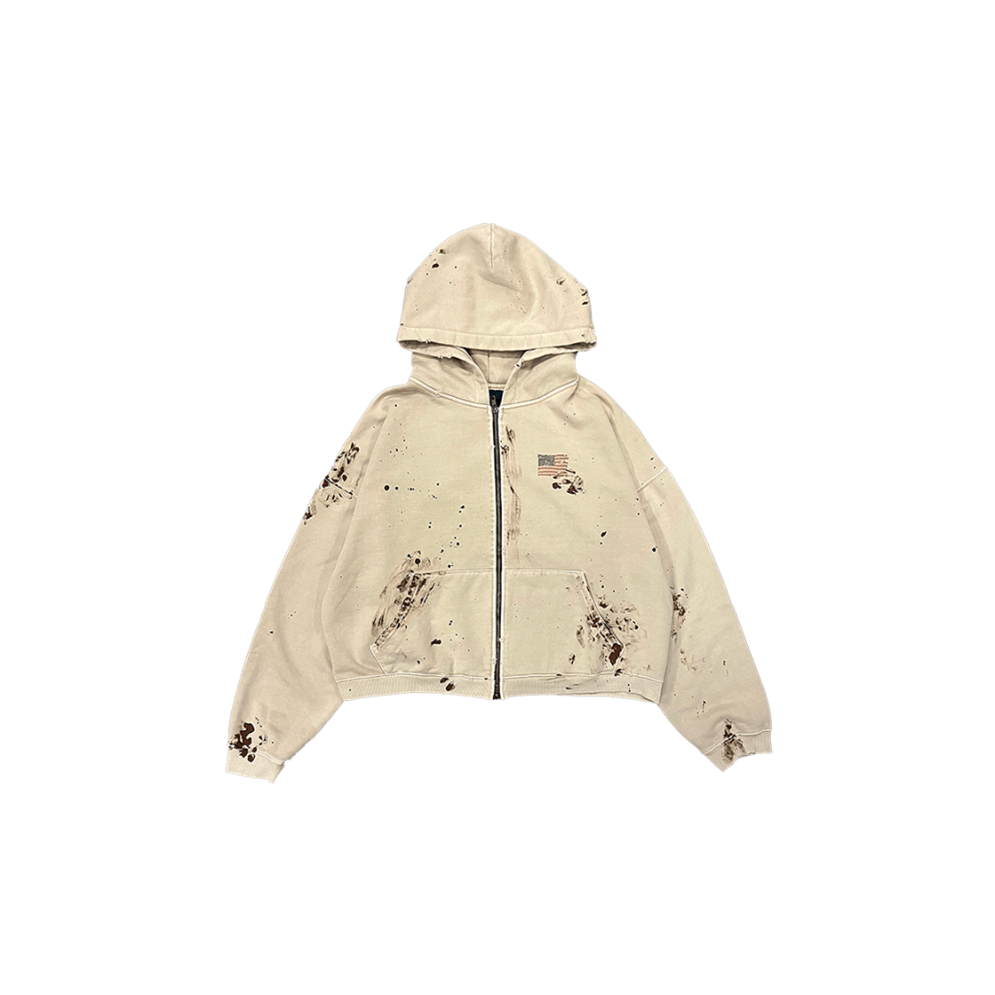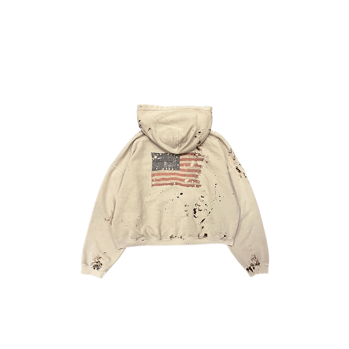VINTAGE AMERICAN FLAG DIRTY WASHED ZIPPED HOODIE - ECRU