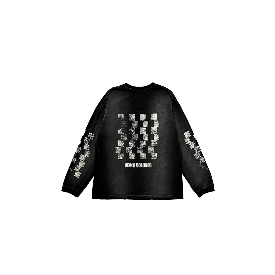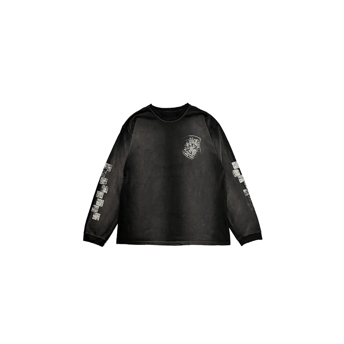 CHECKERBOARD VINTAGE BRUSH WASHED LONG SLEEVE - BLACK