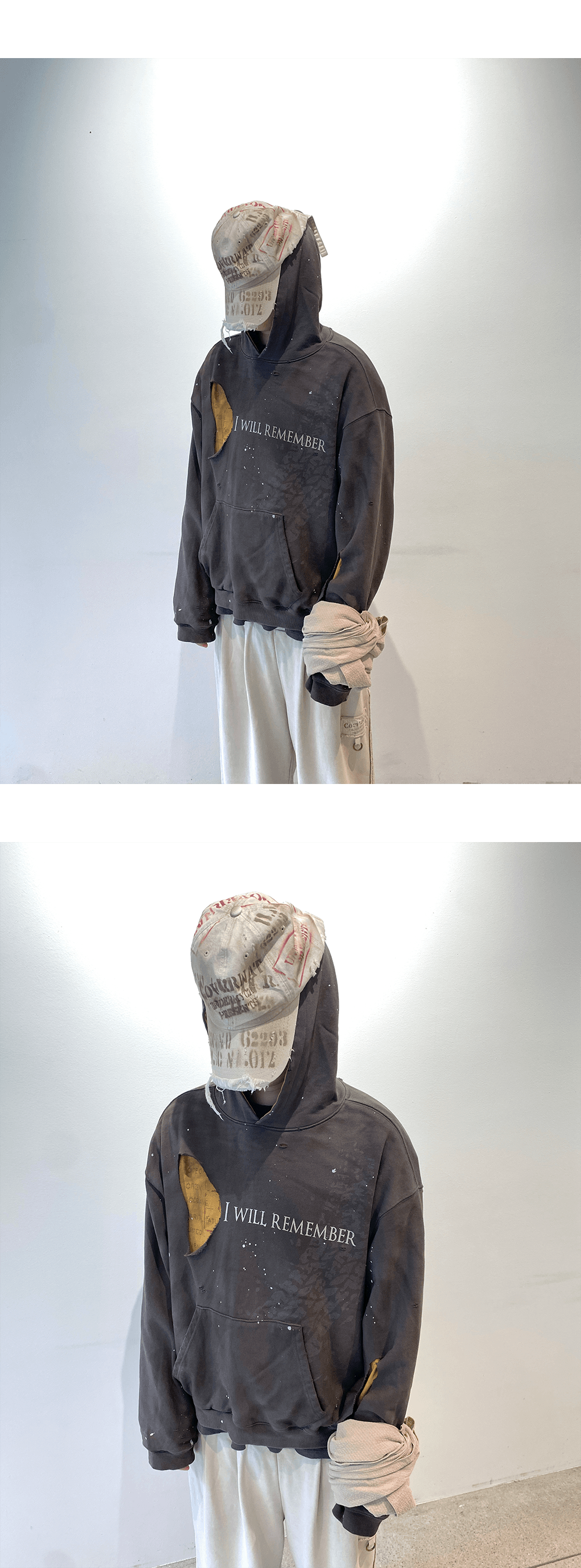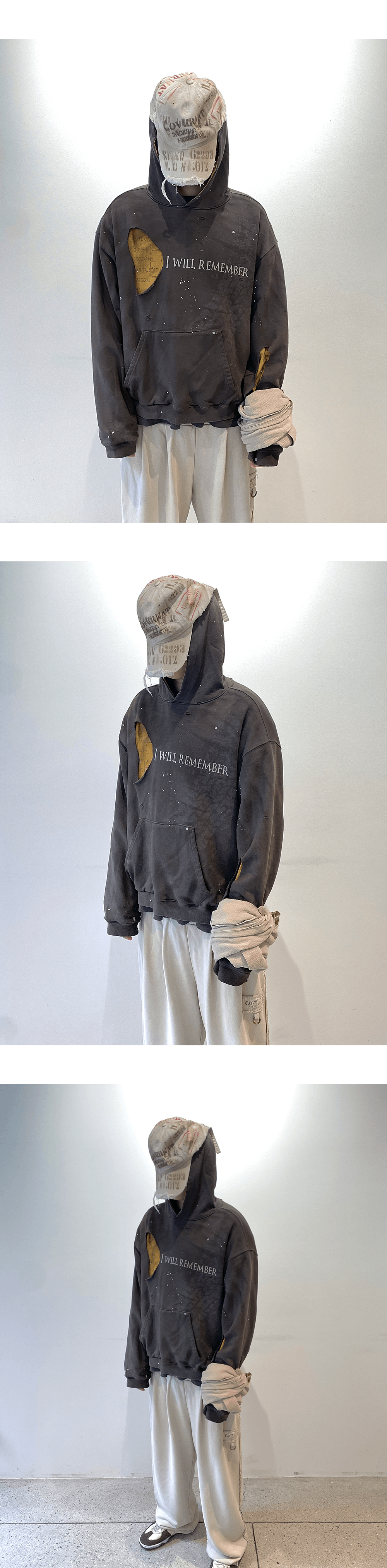 샌드, 차콜, 오렌지 톤의 컬러웨이와 더티 워싱 기법은 과거를 지우고 다시 쓰여진 미래의 유니폼을 연상시킵니다.