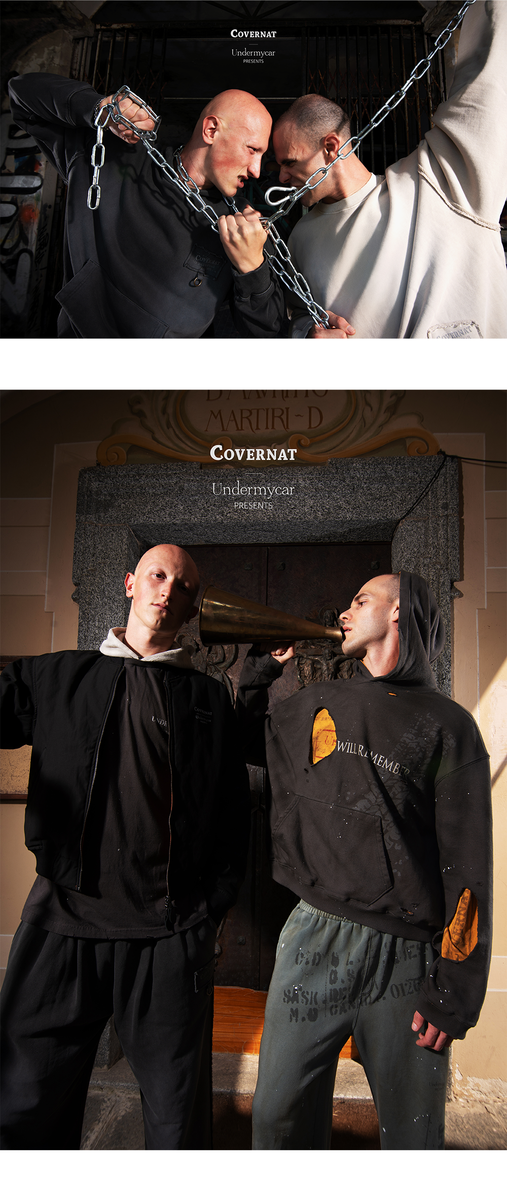 커버낫과 언더마이카는 황폐한 땅 위에 피어난 스트릿 정신을 바탕으로 실용성과 자유로움을 함께 지닌 실루엣을 제안합니다.